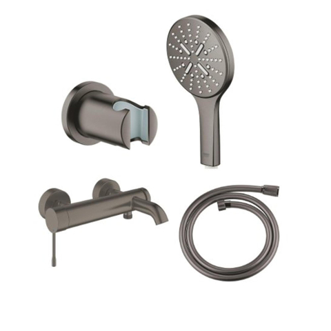 GROHE Essence New bad-/douchekraan met 3 standen handdoucheset en doucheslang brushed hard graphite