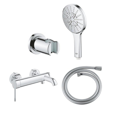 GROHE Essence New bad-/douchekraan met 3 standen handdoucheset en doucheslang chroom