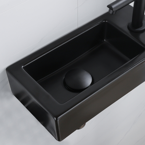 De FugaFlow Efficiente Pietra Fonteinset straalt elegantie uit in elke centimeter. Met zijn slanke afmetingen van 37.5x18.5x9cm past deze fonteinset perfect in zowel kleine als grote badkamers. Het keramische materiaal voegt een vleugje luxe toe, terwijl het kraangat aan de rechterkant zorgt voor een moeiteloze waterstroom. De fonteinkraan in mat zwart voegt een eigentijdse touch toe aan het geheel, waardoor je badkamer een moderne uitstraling krijgt.