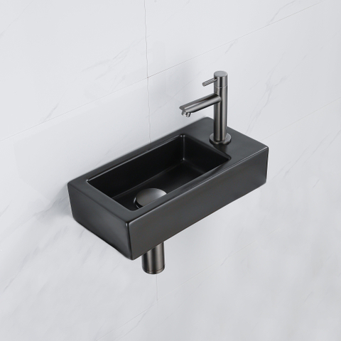 FugaFlow Efficiente Pietra Fonteinset - 37.5x18.5x9cm - keramiek - kraangat rechts - fonteinkraan gunmetal - afvoerplug - verlaagd sifon - Mat Zwart