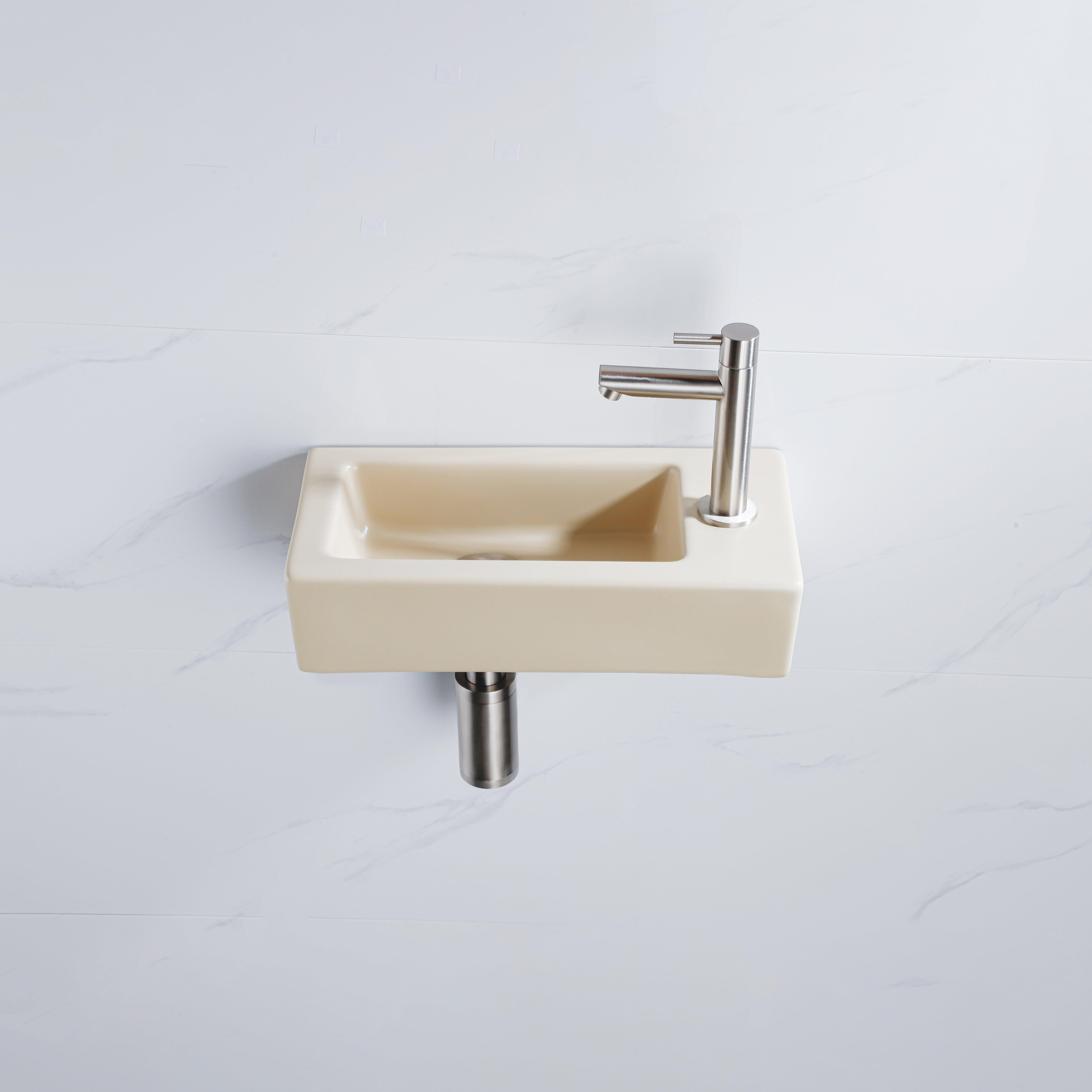 FugaFlow Efficiente Pietra Fonteinset - 37.5x18.5x9cm - keramiek - kraangat rechts - fonteinkraan geborsteld RVS - afvoerplug - verlaagd sifon - Mat Beige