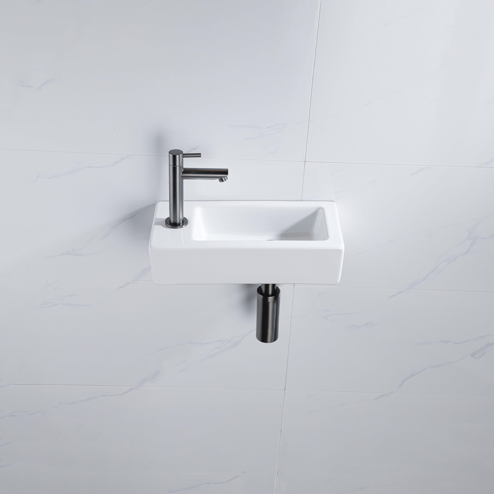 De FugaFlow Efficiente Pietra Fonteinset straalt luxe uit met zijn glanzend witte keramische afwerking. Met een afmeting van 37.5x18.5x9cm past deze fonteinset perfect in elke moderne badkamer. Het kraangat aan de linkerkant zorgt voor een moeiteloze installatie van de fonteinkraan gunmetal, die een vleugje elegantie toevoegt aan het geheel. De verlaagde sifon zorgt voor een strakke afwerking en minimaliseert ruimtegebruik, waardoor deze fonteinset zowel functioneel als stijlvol is.