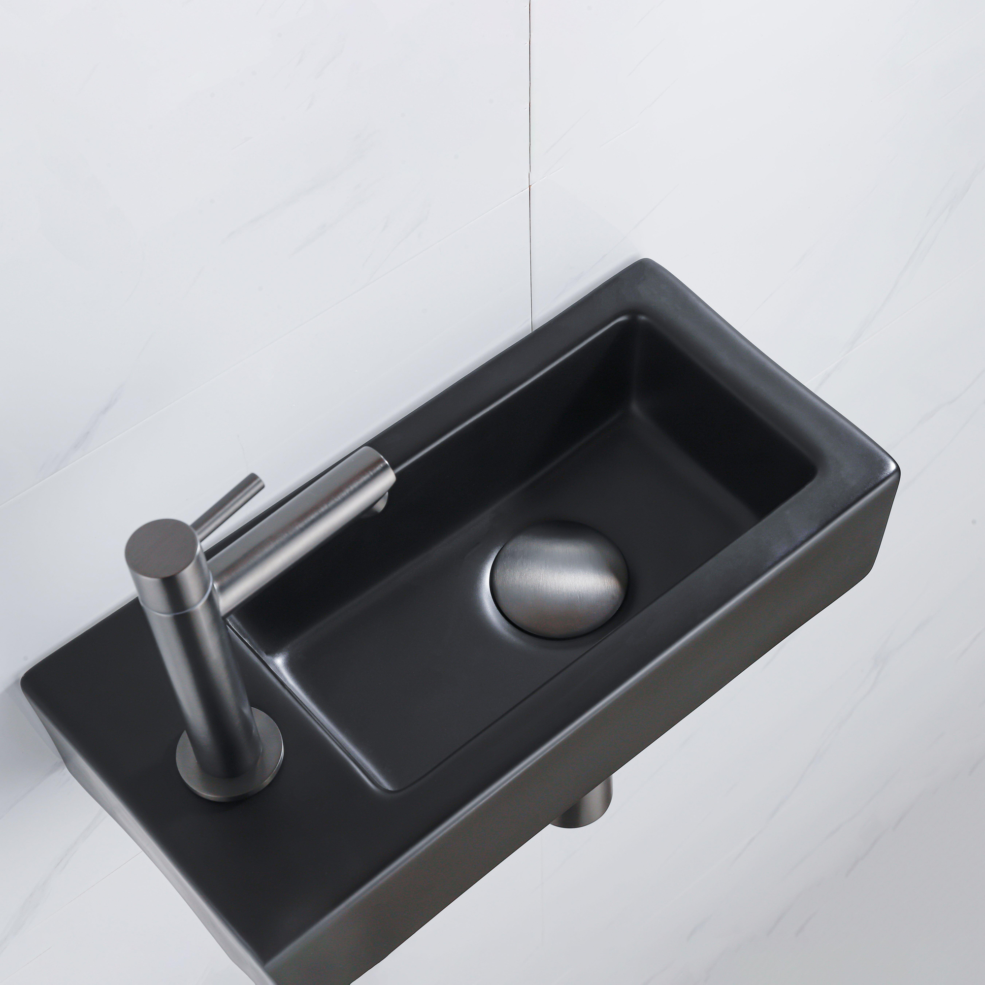 FugaFlow Efficiente Pietra Fonteinset - 37.5x18.5x9cm - keramiek - kraangat links - fonteinkraan gunmetal - afvoerplug - verlaagd sifon - Mat Zwart