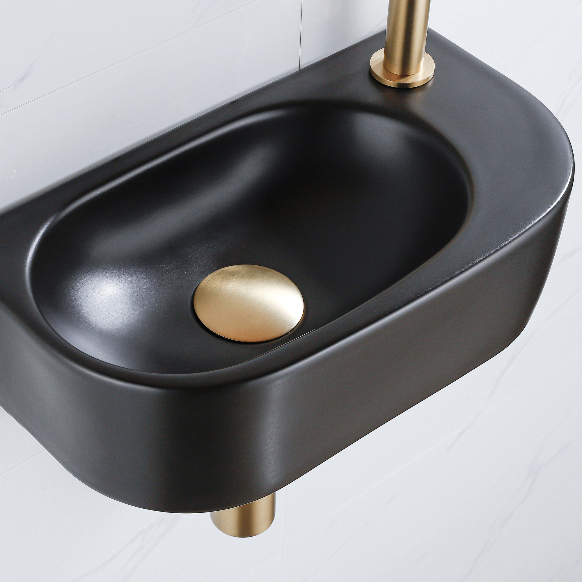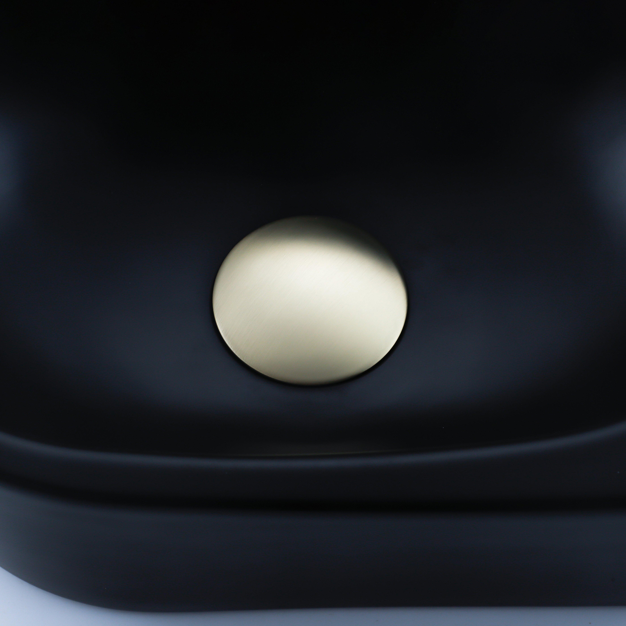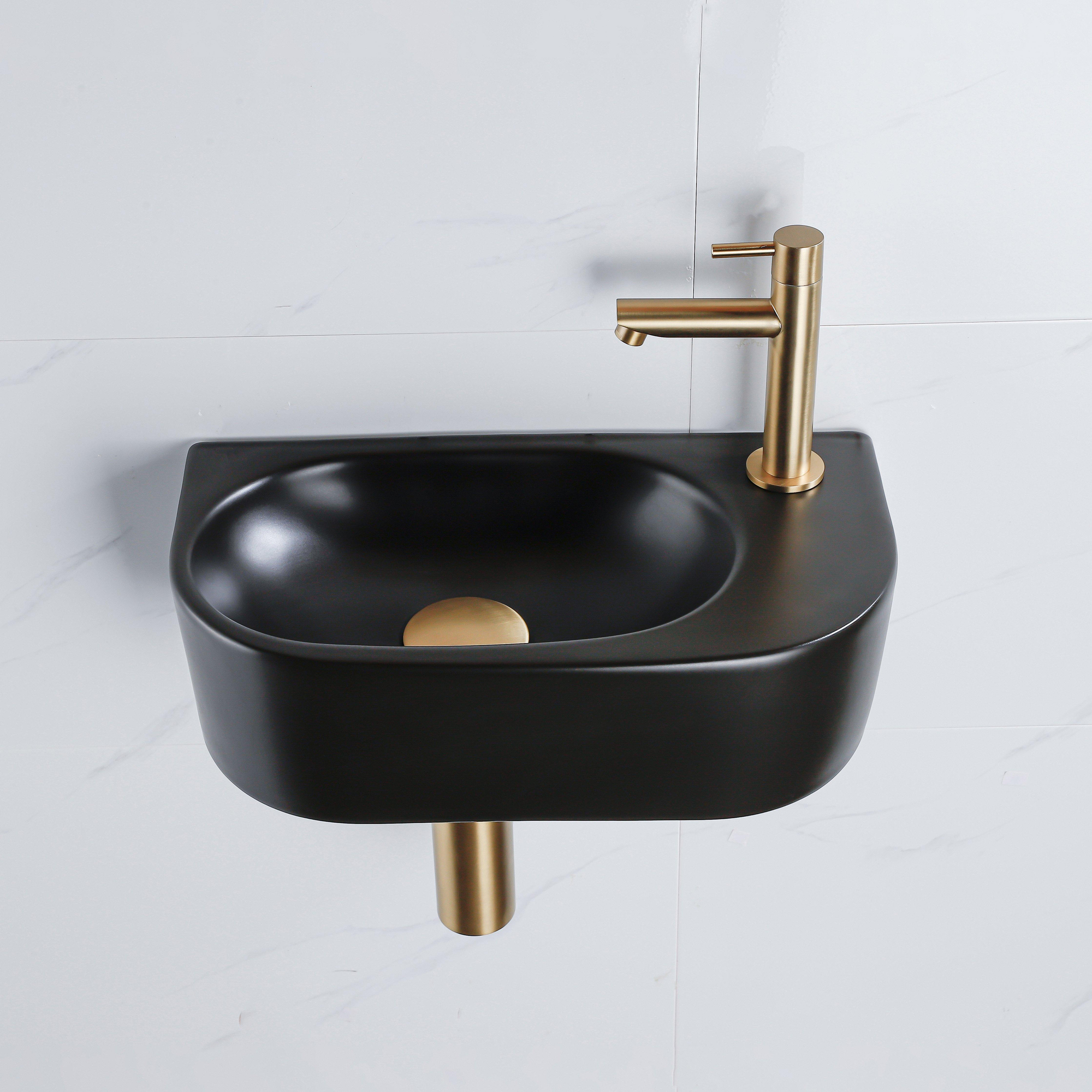 Fugaflow Efficiente Pietra Fonteinset - 40x21.5x12cm - rechts - glad - halfrond - 1 kraangat - keramiek - fonteinkraan geborsteld messing - afvoerplug - verlaagd sifon - zwart mat
