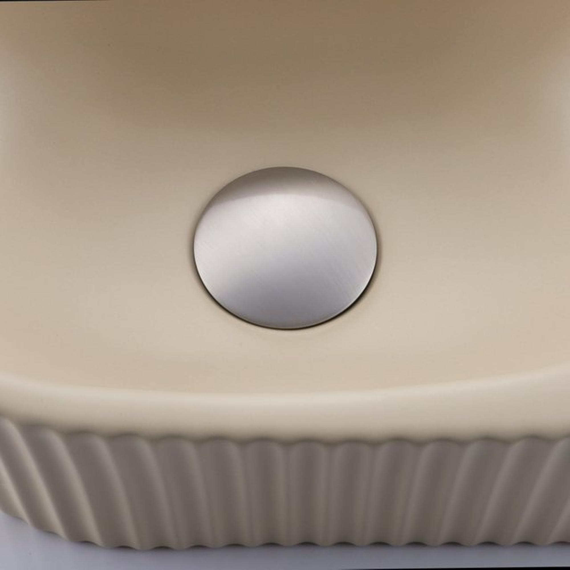 Fugaflow Efficiente Pietra Fonteinset - 40x21.5x12cm - rechts - glad - halfrond - 1 kraangat - keramiek - fonteinkraan geborsteld rvs - afvoerplug - verlaagd sifon - beige
