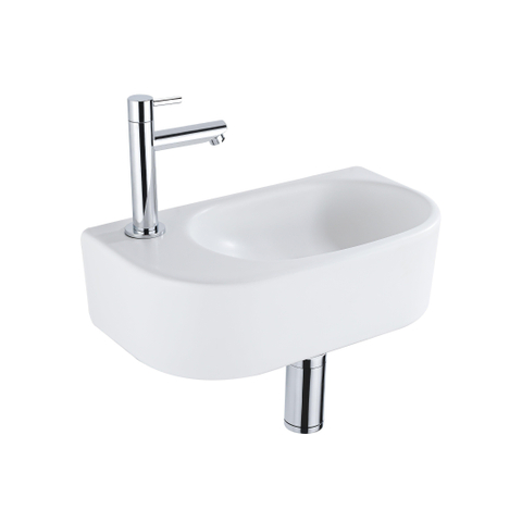 Fugaflow Efficiente Pietra Fonteinset - 40x21.5x12cm - links - glad - halfrond - 1 kraangat - keramiek - fonteinkraan chroom - afvoerplug - verlaagd sifon - wit mat