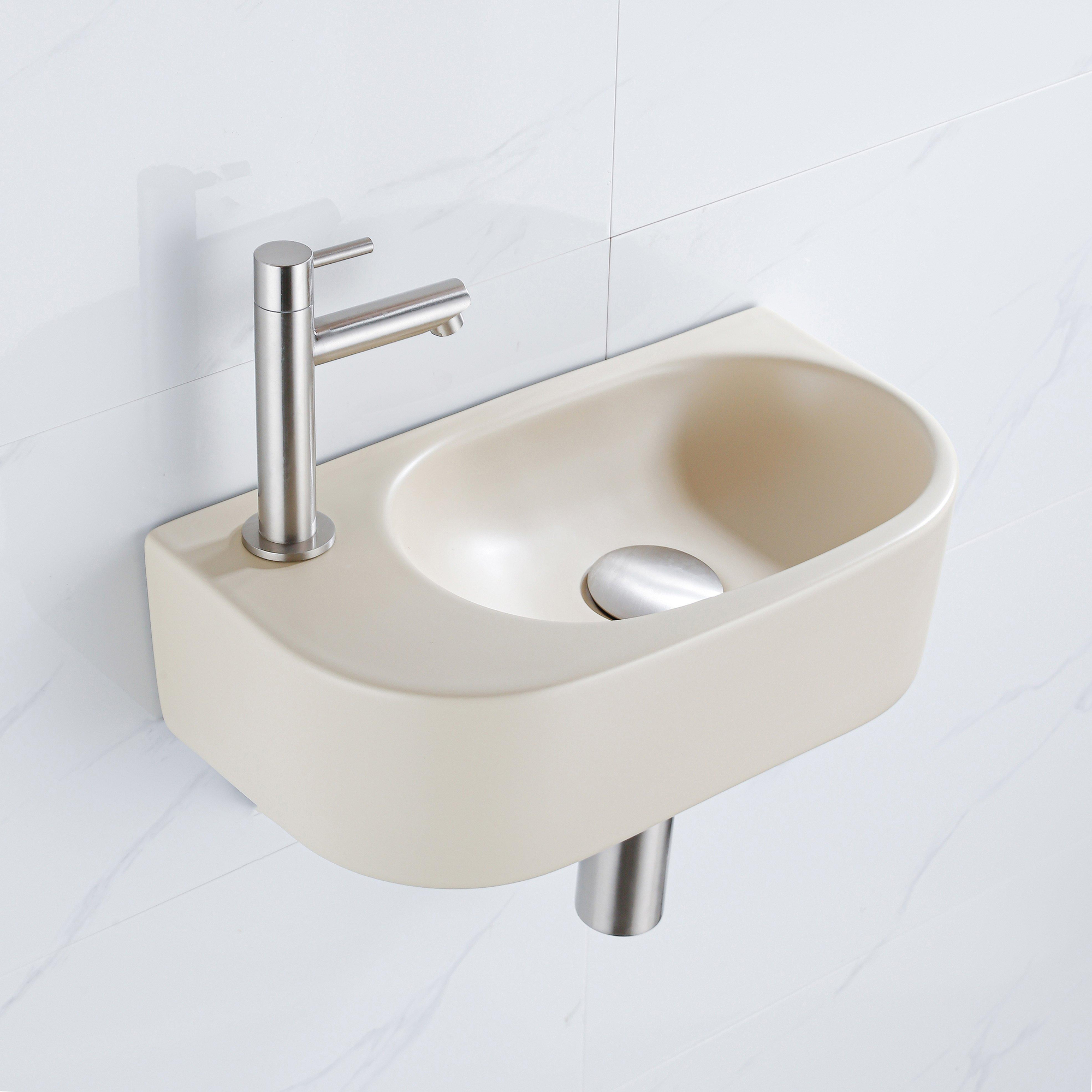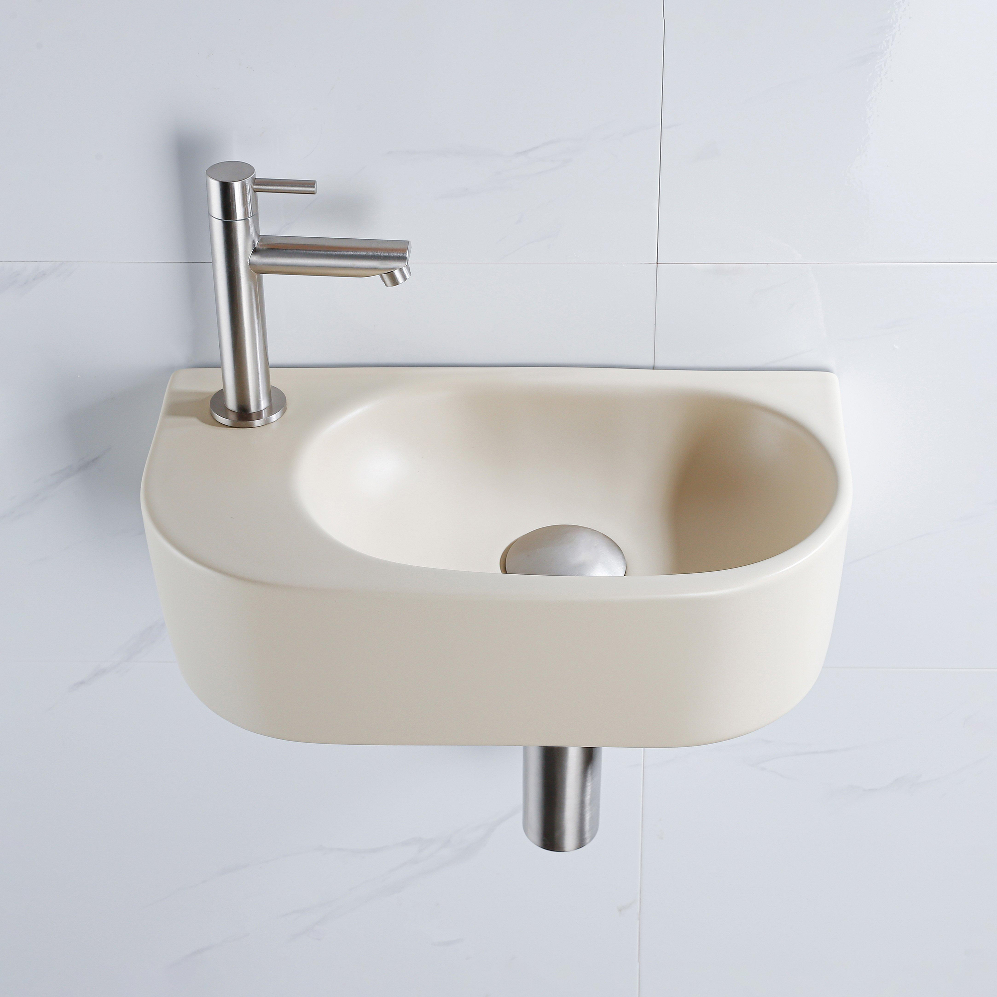 Fugaflow Efficiente Pietra Fonteinset - 40x21.5x12cm - links - glad - halfrond - 1 kraangat - keramiek - fonteinkraan geborsteld rvs - afvoerplug - verlaagd sifon - beige