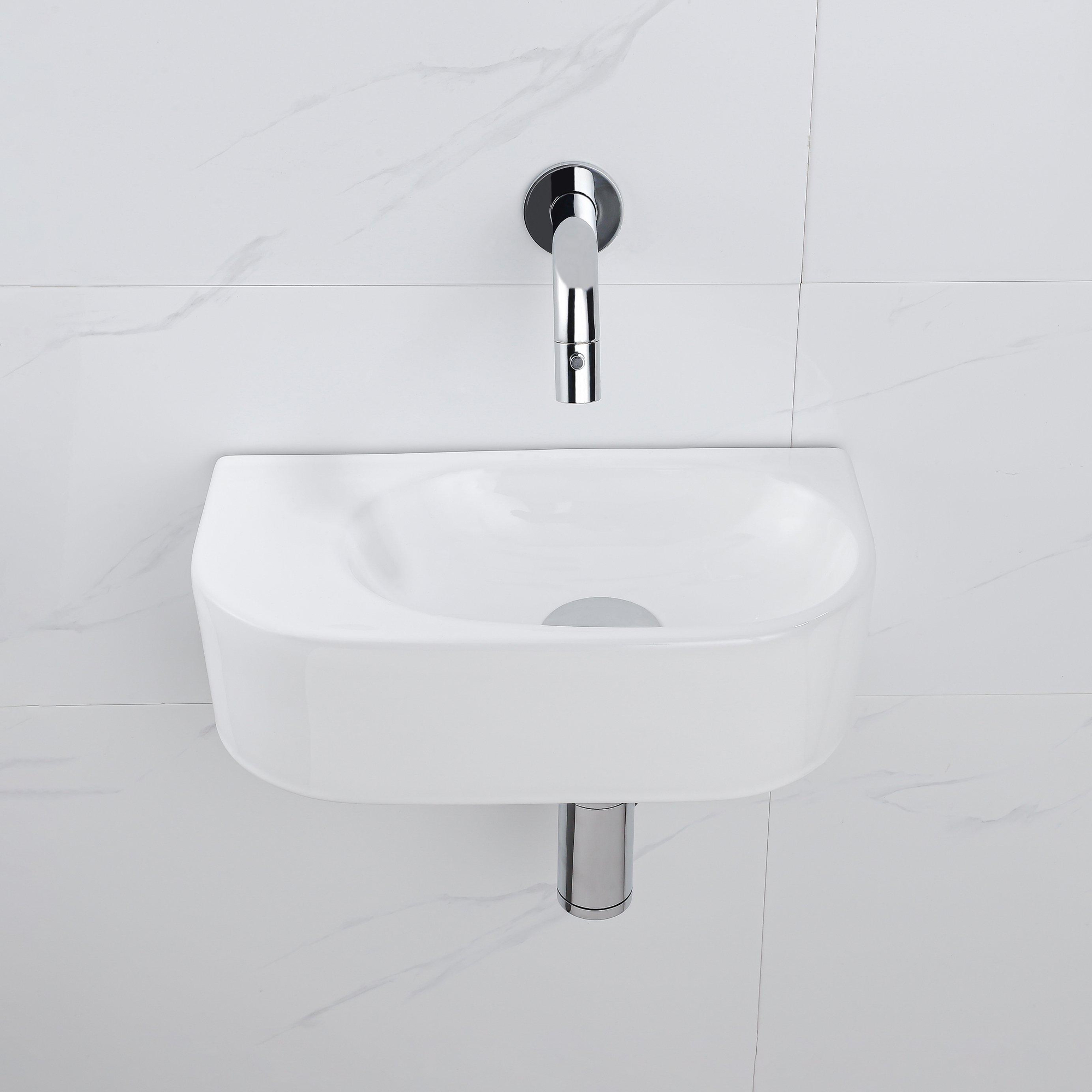 Fugaflow Efficiente Pietra Fonteinset - 40x21.5x12cm - glad - halfrond - keramiek - fonteinkraan chroom - afvoerplug - verlaagd sifon - wit glans