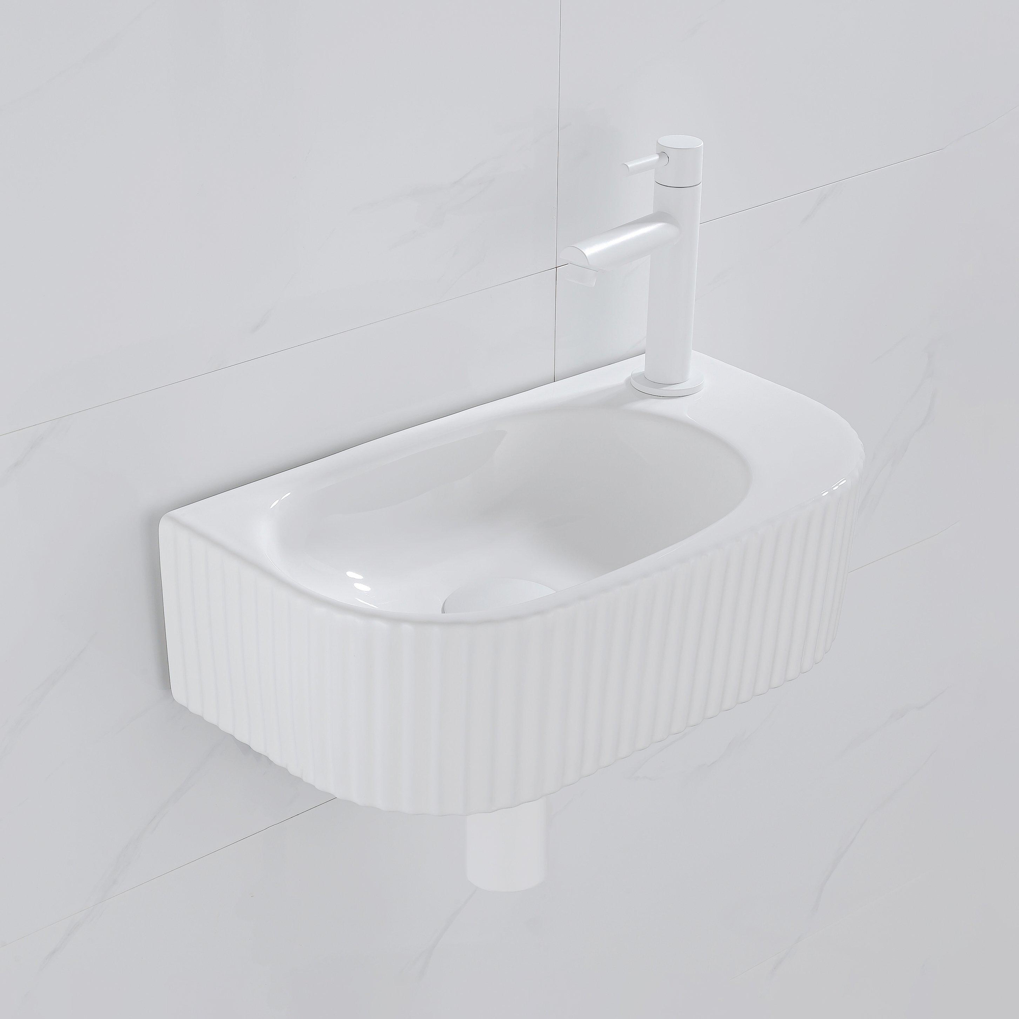 Fugaflow Efficiente Pietra Fonteinset - 40x21.5x12cm - rechts - geribbeld - halfrond - 1 kraangat - keramiek - fonteinkraan wit mat - afvoerplug - verlaagd sifon - wit mat