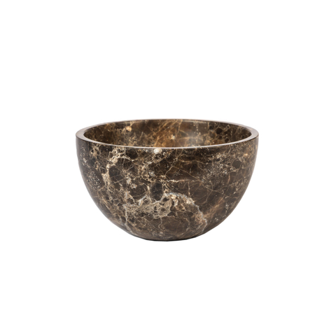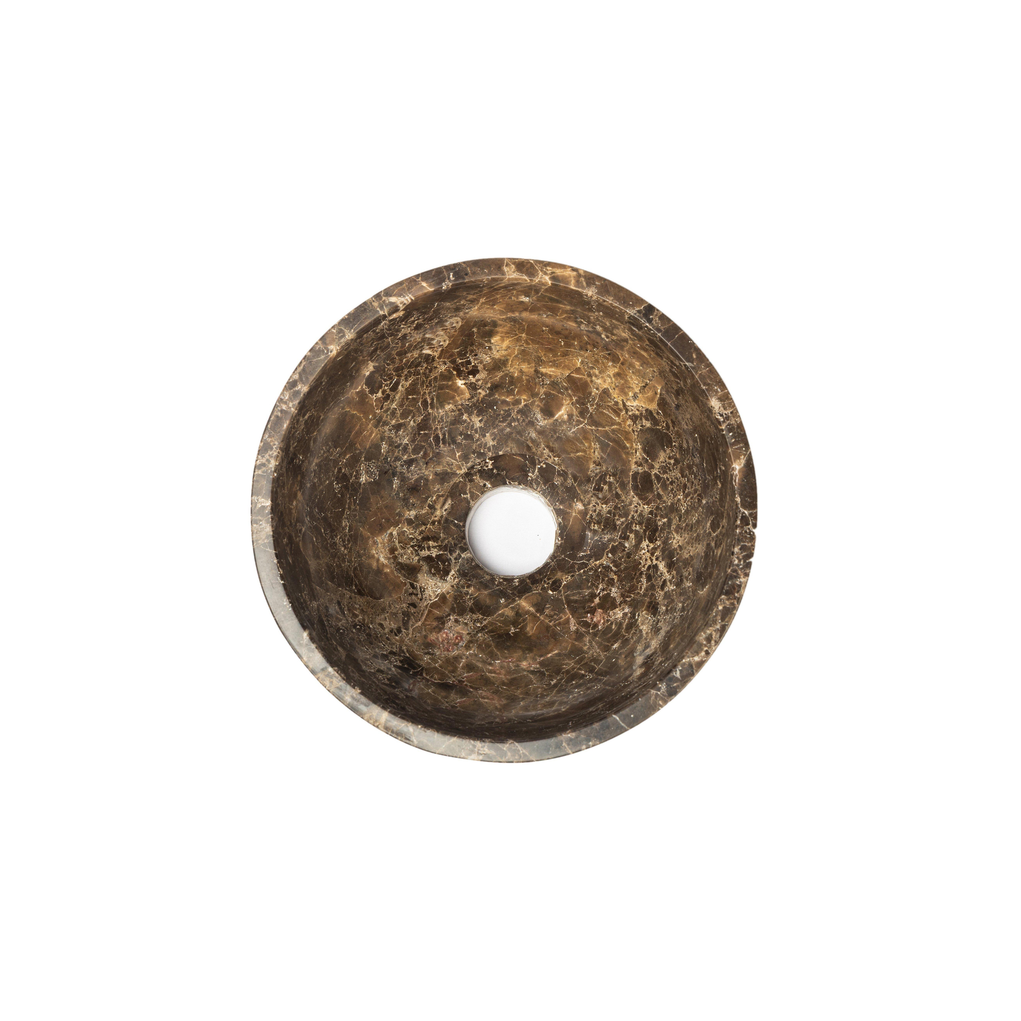 Met deze prachtige waskom geef je jouw badkamer een unieke en natuurlijke uitstraling. Het compacte formaat van 21x21x12 cm maakt het een ideale keuze voor kleinere badkamers of als stijlvolle toevoeging in een gastentoilet. Het gebruik van natuursteen in de warme Dark Emperador kleur zorgt voor een tijdloze en luxe sfeer, die direct opvalt. Dankzij de ronde vorm voelt het geheel zacht en uitnodigend aan, terwijl het robuuste materiaal garant staat voor duurzaamheid en een lange levensduur. Zo transformeer je jouw badkamer eenvoudig in een plek waar je elke dag met plezier begint en eindigt.