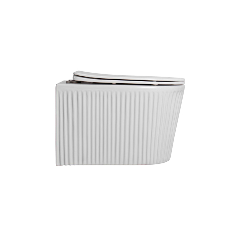 Aloni Muffly Hangend Toilet - 36.5x52x34.6cm - wervelspoeling - randloos - met zitting - softclose - quick release - compact - ribbel - glans wit