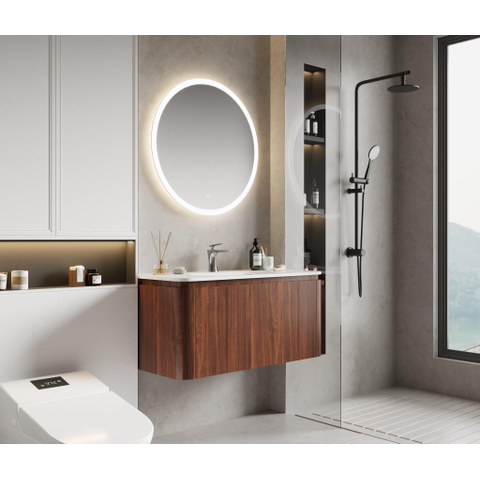 De kast straalt een tijdloze elegantie uit dankzij de kastanjekleurige afwerking die warmte en karakter toevoegt aan je badkamer. De afgeronde hoeken van de wastafel zorgen voor een zachte, moderne look die naadloos aansluit bij diverse interieurstijlen. Door het gebruik van hoogwaardige materialen en een strak ontwerp, geef je jouw badkamer een luxe uitstraling zonder in te leveren op comfort. Dit meubel is een echte blikvanger die jouw badkamer een persoonlijke en verfijnde touch geeft.