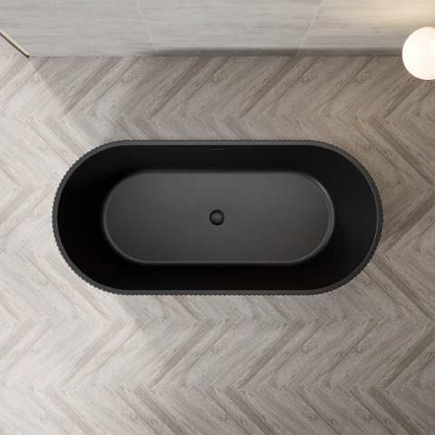De matzwarte afwerking van dit bad geeft jouw badkamer een moderne en tijdloze uitstraling. De ribbelstructuur voegt een uniek detail toe dat het bad onderscheidt van standaard modellen. Dit zorgt niet alleen voor een visueel aantrekkelijke look, maar ook voor een subtiele textuur die het bad extra karakter geeft. Door te kiezen voor een vrijstaand model creëer je een speels en ruimtelijk effect, waardoor je badkamer direct een stuk luxer aanvoelt. Zo geniet je elke dag van een stijlvolle omgeving die jouw persoonlijke smaak perfect weerspiegelt.
