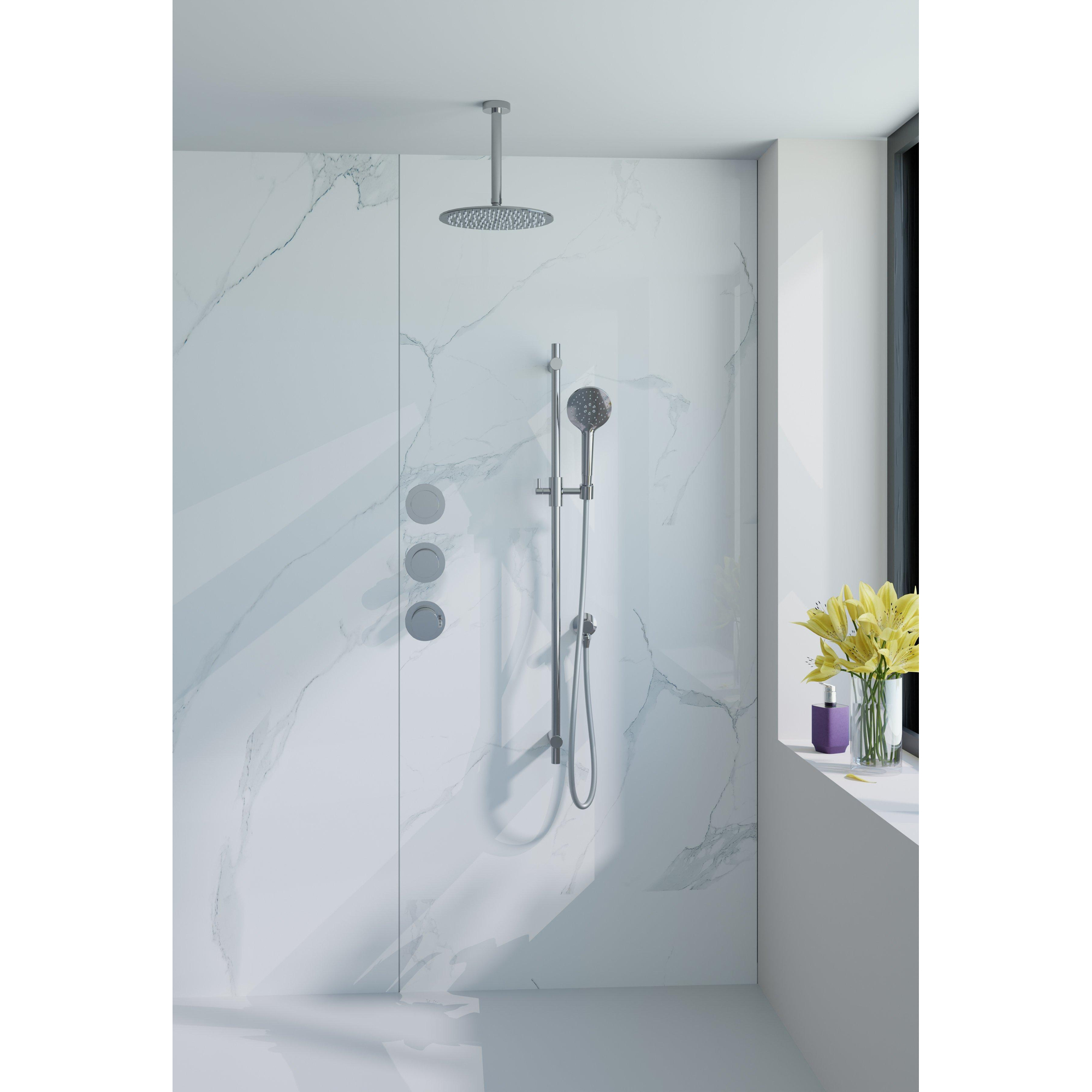 Deze regendoucheset is niet alleen functioneel, maar ook stijlvol. De ronde handdouche en ronde hoofddouche voegen een eigentijdse uitstraling toe aan je badkamerinterieur. Met een 20cm plafondarm wordt de hoofddouche op de perfecte hoogte geplaatst voor een optimale douche-ervaring.