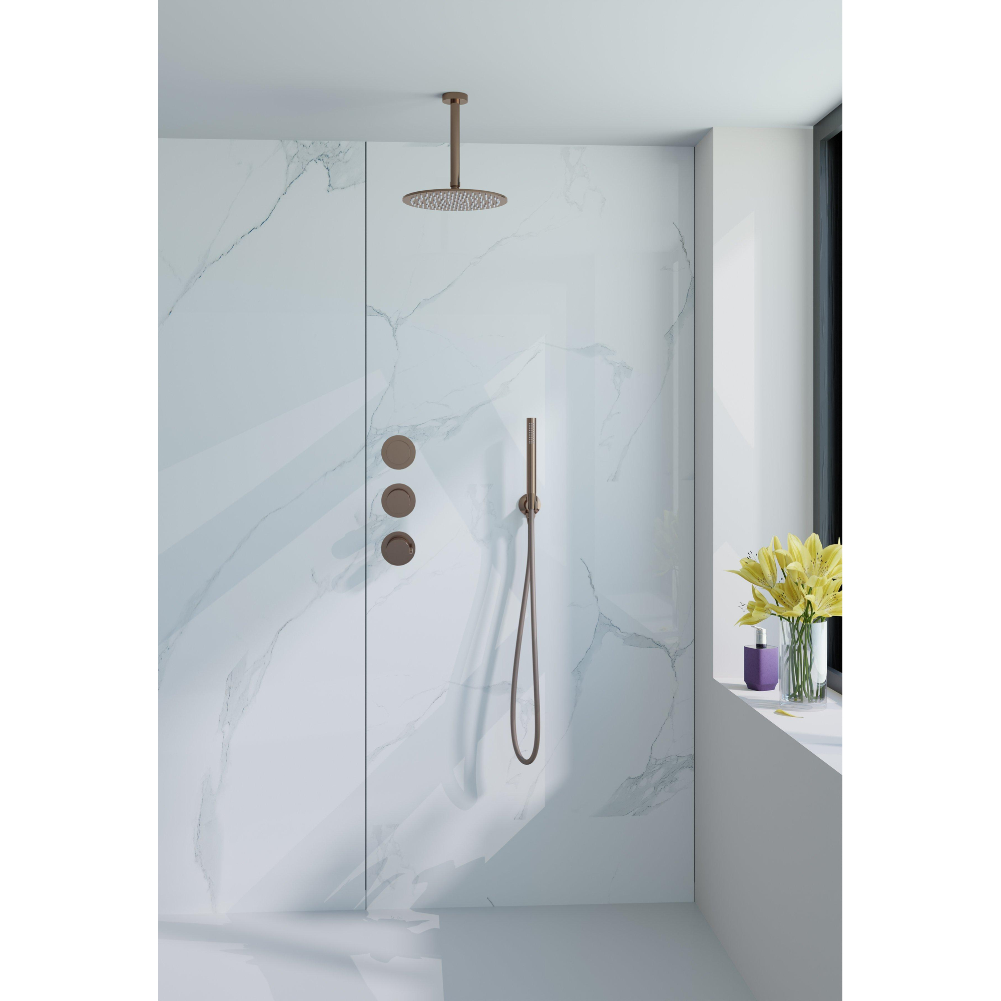Fortifura Nebbio Regendoucheset - inbouwkraan - inbouwdeel - wandaansluitbocht- doucheslang metaal - staafhanddouche - 20cm plafondarm - ronde hoofddouche - geborsteld koper PVD (koper)