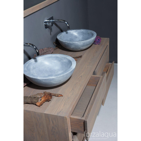 Forzalaqua Roma waskom 40x40x15cm Rond Natuursteen Cloudy marmer gezoet SHOWROOMMODEL