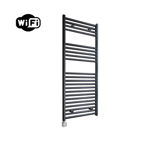 Sanicare HPW Elektrische Radiator - 111.8x60cm - 730W - wifi - thermostaat - zilver - linksonder - mat zwart