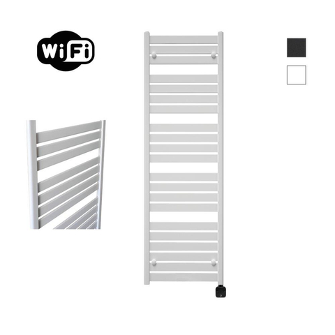 Met de ingebouwde wifi-functionaliteit bedien je de radiator eenvoudig via je smartphone of tablet, waar je ook bent. De nauwkeurige thermostaat aan de rechteronderzijde zorgt ervoor dat je de temperatuur precies kunt instellen op jouw voorkeur. Dit slimme systeem helpt je energie te besparen door de verwarming alleen aan te zetten wanneer dat nodig is. Dankzij de elektrische werking is installatie eenvoudig en flexibel, zonder dat je afhankelijk bent van een centrale verwarming. Zo geniet je snel van een warme badkamer, precies afgestemd op jouw wensen.