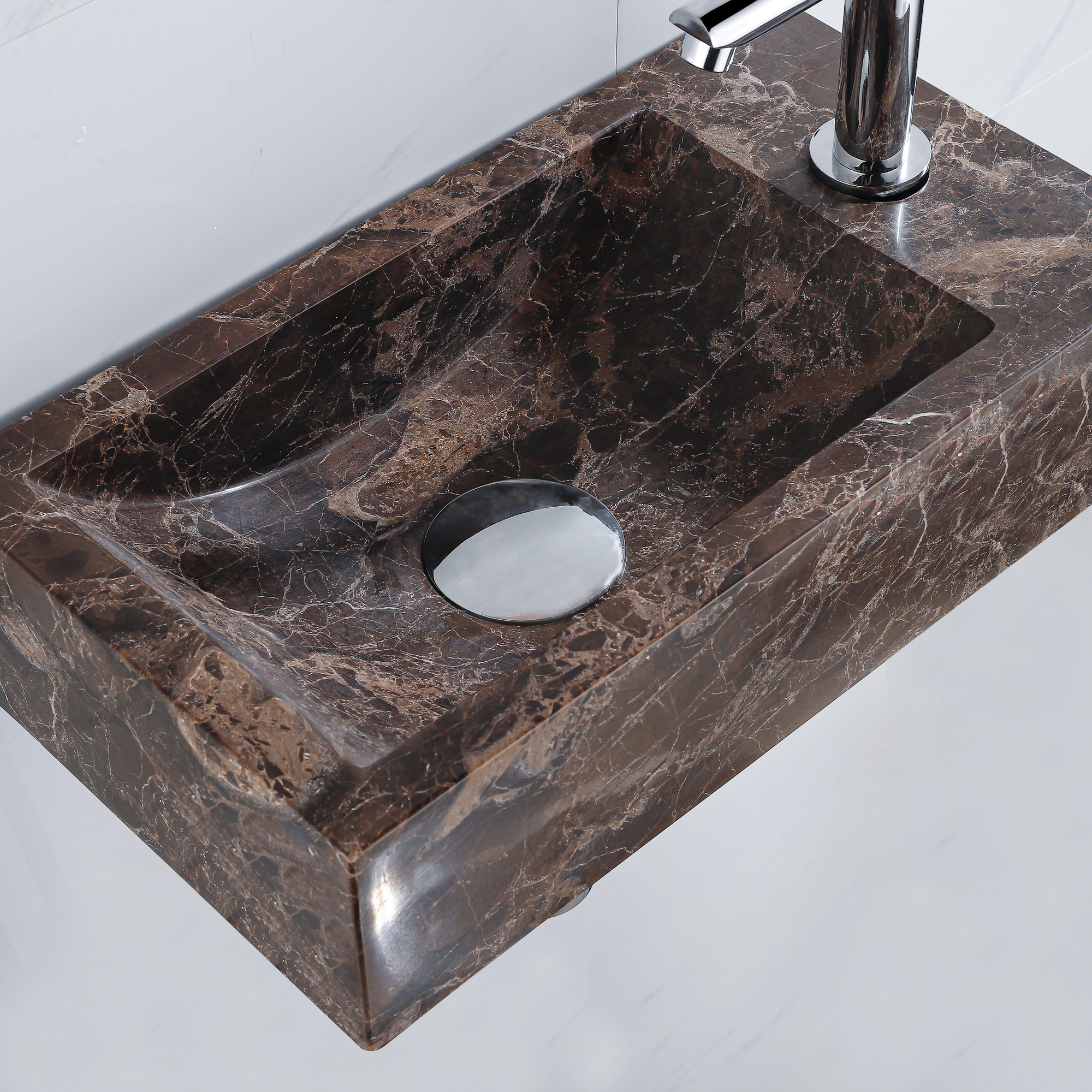 FugaFlow Efficiente Pietra Fonteinset - 40x22x10cm - kraangat rechts - fonteinkraan chroom - afvoerplug - verlaagd sifon - Dark Emporador