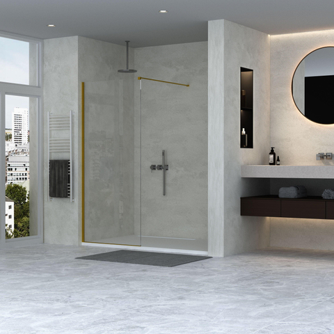 De FugaFlow Efficiente Vetro 2.0 Inloopdouche van 80x200 cm is een stijlvolle en praktische toevoeging aan je badkamer. Met helder glas en een goud matte afwerking geeft deze douchewand je badkamer een luxe uitstraling. Dankzij het wandprofiel en de stabilisatiestang staat de douchewand stevig en veilig.