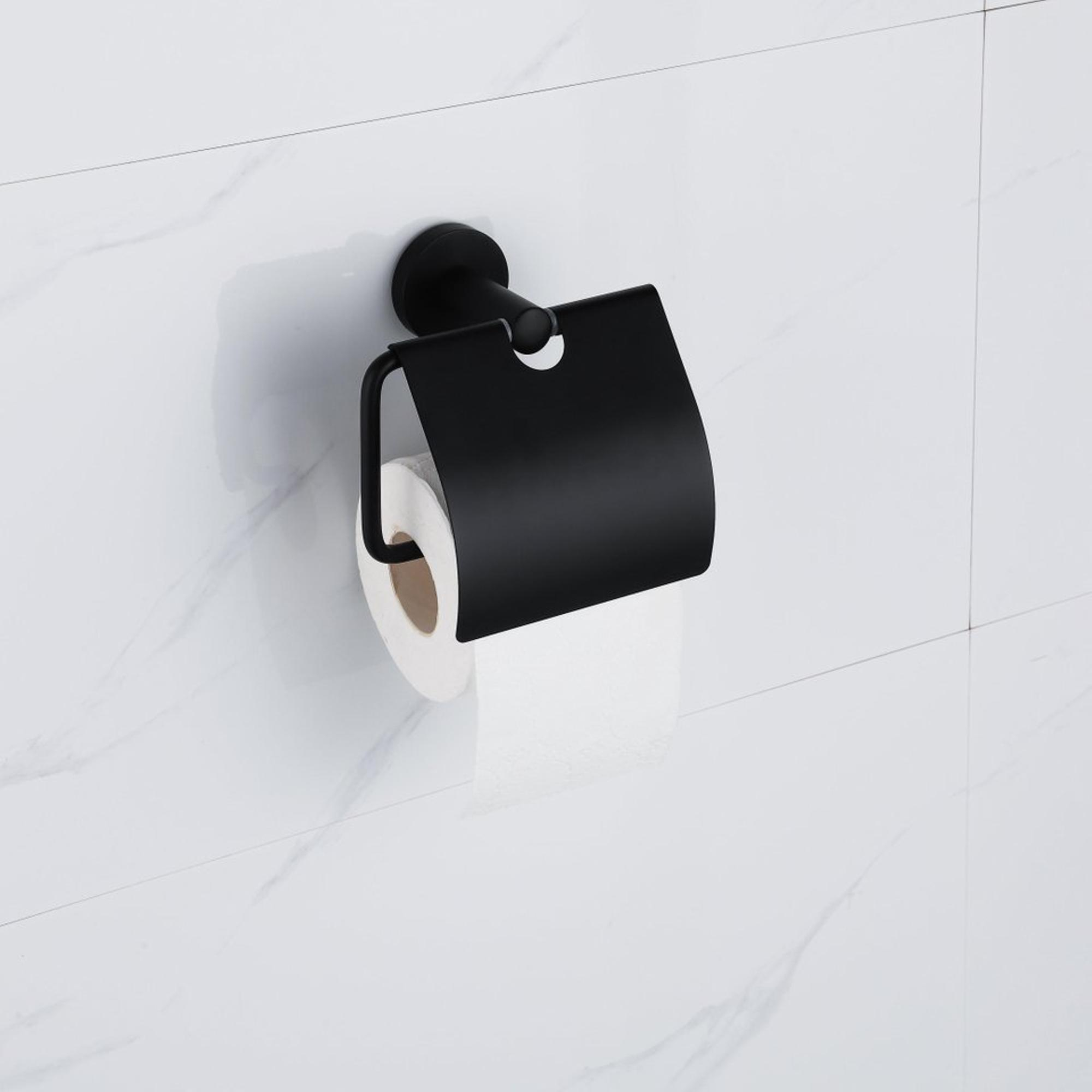 De FugaFlow Eccelente Acces Toiletset in mat zwart is een complete set met een toiletrolhouder met klep, toiletborstel en handoekhaak. Deze stijlvolle accessoires geven je badkamer een moderne en verzorgde uitstraling. Dankzij het matte zwarte design passen ze perfect in diverse badkamerstijlen.