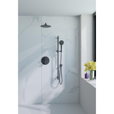 FugaFlow Eccelente Acces Inbouw Regendoucheset - rond - thermostatisch - wandarm - glijstang - 25cm hoofddouche - ronde handdouche - metalen doucheslang - mat zwart