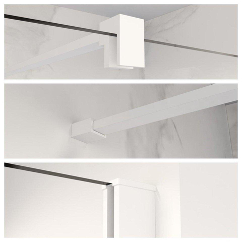 FugaFlow Eccelente Vetro Halfhoge Inloopdouche - 100x80cm - ribbelglas - 8mm - nano - met profiel en stabilisatiestang - Mat Wit