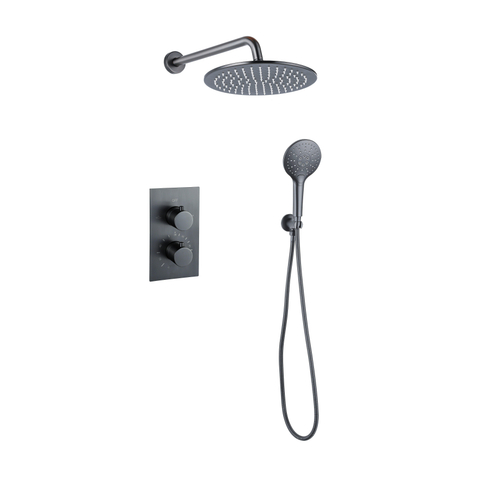 Stap in de ultieme luxe met de FugaFlow Eccelente Acces Inbouw Regendoucheset. Deze stijlvolle set met een geborsteld Gunmetal PVD afwerking biedt een moderne en ontspannende douche-ervaring dankzij de 25cm grote hoofddouche en ronde handdouche. De thermostatische kraan zorgt voor een constante watertemperatuur, zodat je altijd comfortabel kunt douchen.