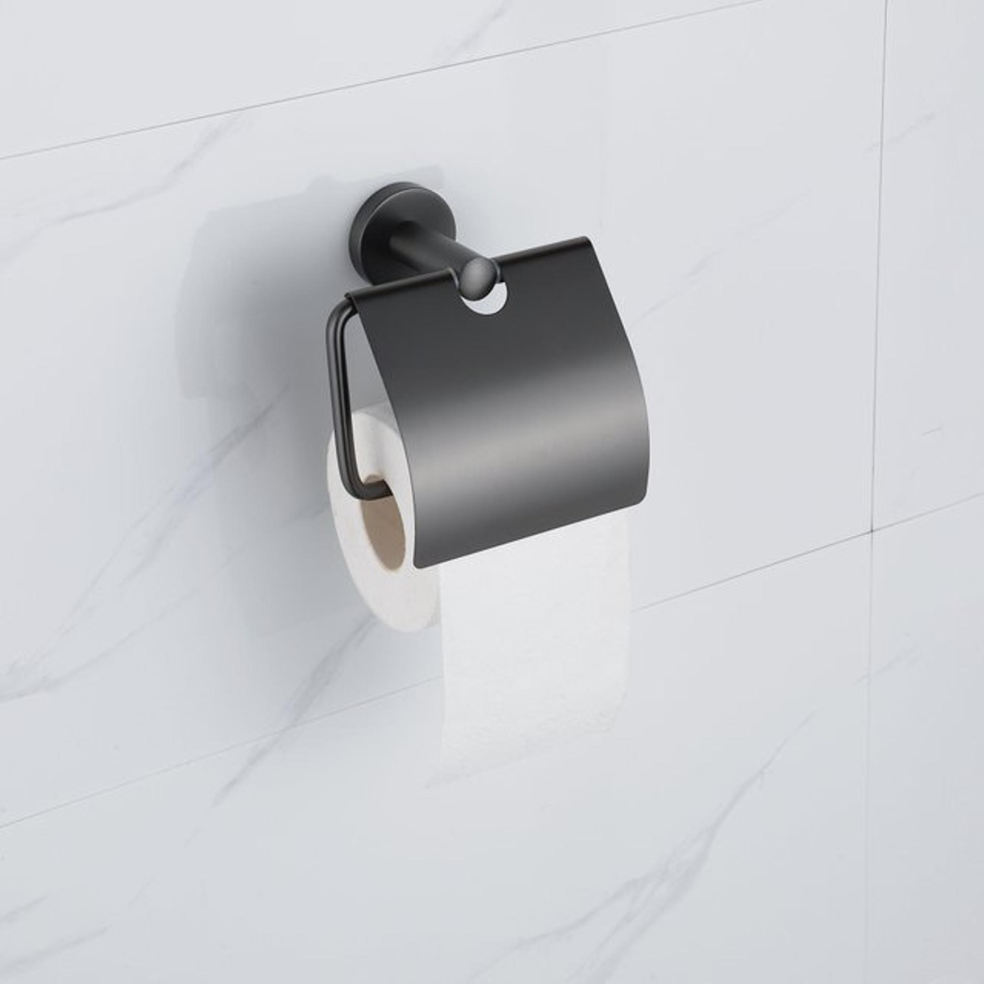 FugaFlow Eccelente Acces Toiletset - toiletrolhouder met klep toiletborstel - handoekhaak - geborsteld gunmetal PVD