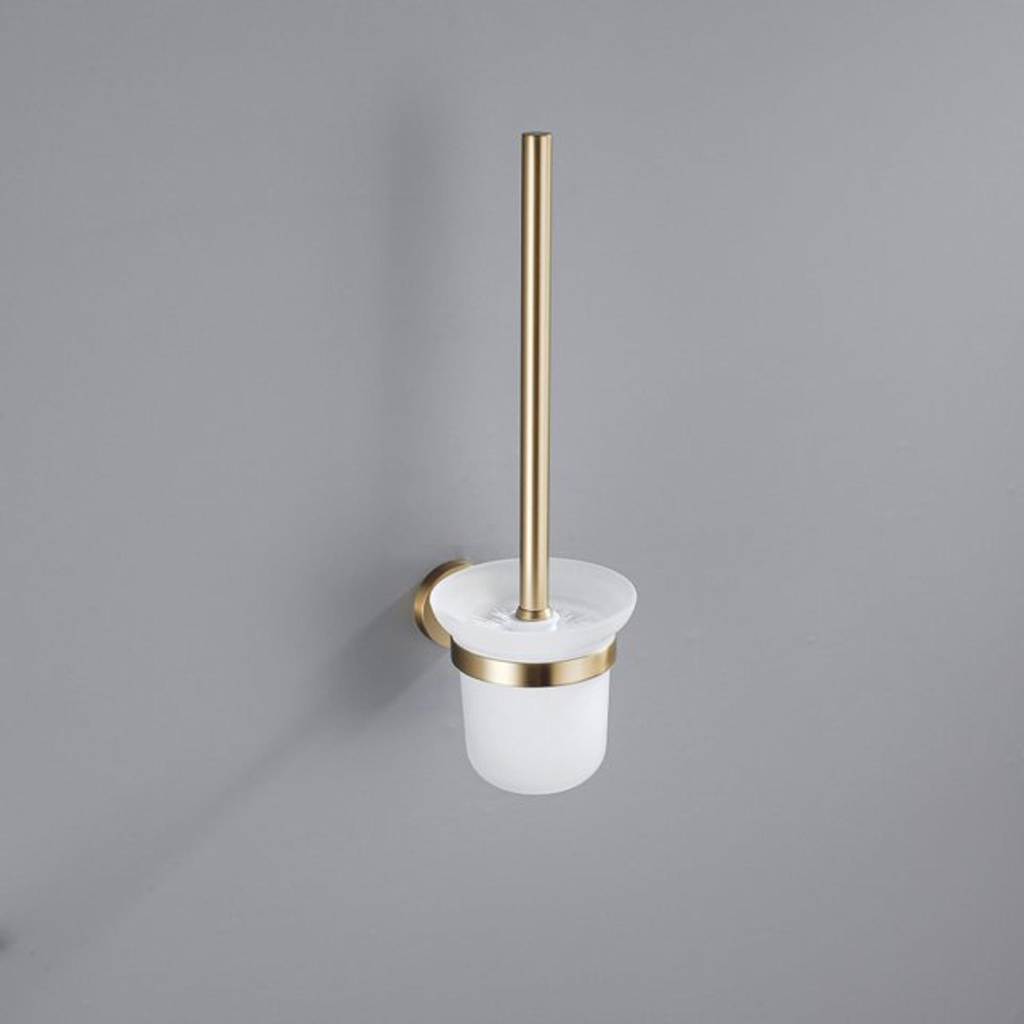 De FugaFlow Eccelente Acces Toiletset in geborsteld messing PVD (goud) is een stijlvolle en complete set voor jouw badkamer. Deze set bevat een toiletrolhouder met klep, een toiletborstel en een handdoekhaak, allemaal uitgevoerd in een luxe gouden finish die warmte en elegantie toevoegt aan je interieur.