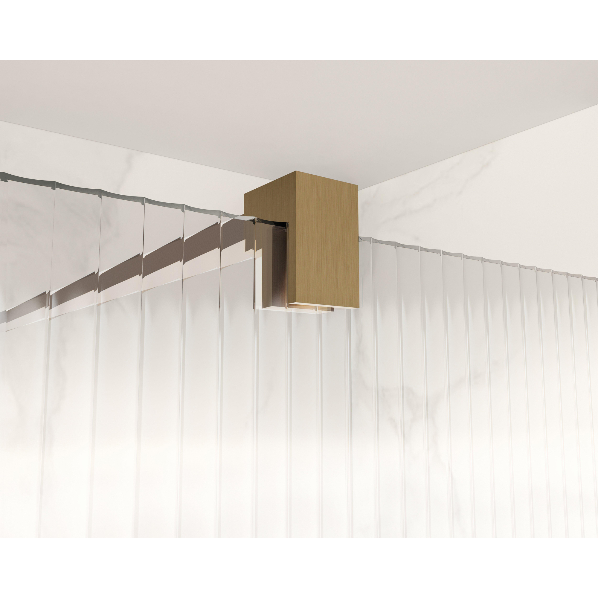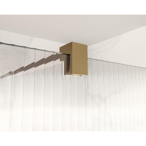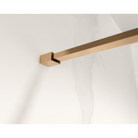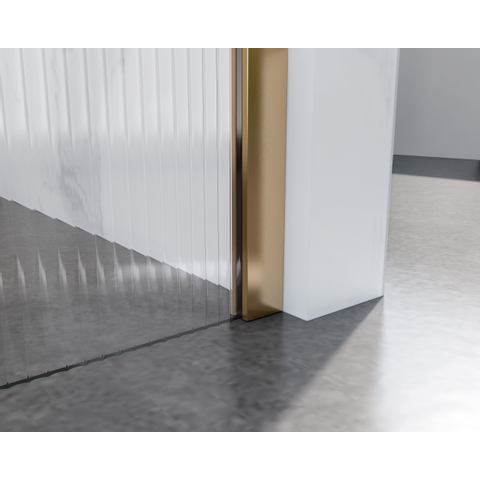 De FugaFlow Eccelente Vetro inloopdouche van 110x200cm met ribbelglas en een wandarm in geborsteld koper PVD is een stijlvolle en moderne toevoeging aan jouw badkamer. Het ribbelglas zorgt voor privacy terwijl het licht mooi wordt verspreid, en de geborsteld koperen wandarm geeft een warme, luxe uitstraling.