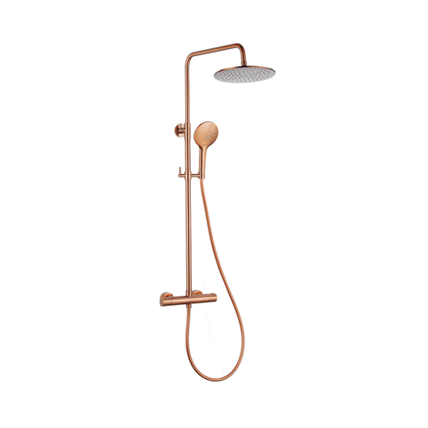 FugaFlow Eccelente Acces Regendoucheset - thermostatisch - 25cm hoofddouche - gladde slang - ronde handdouche - Geborsteld koper PVD (Koper)