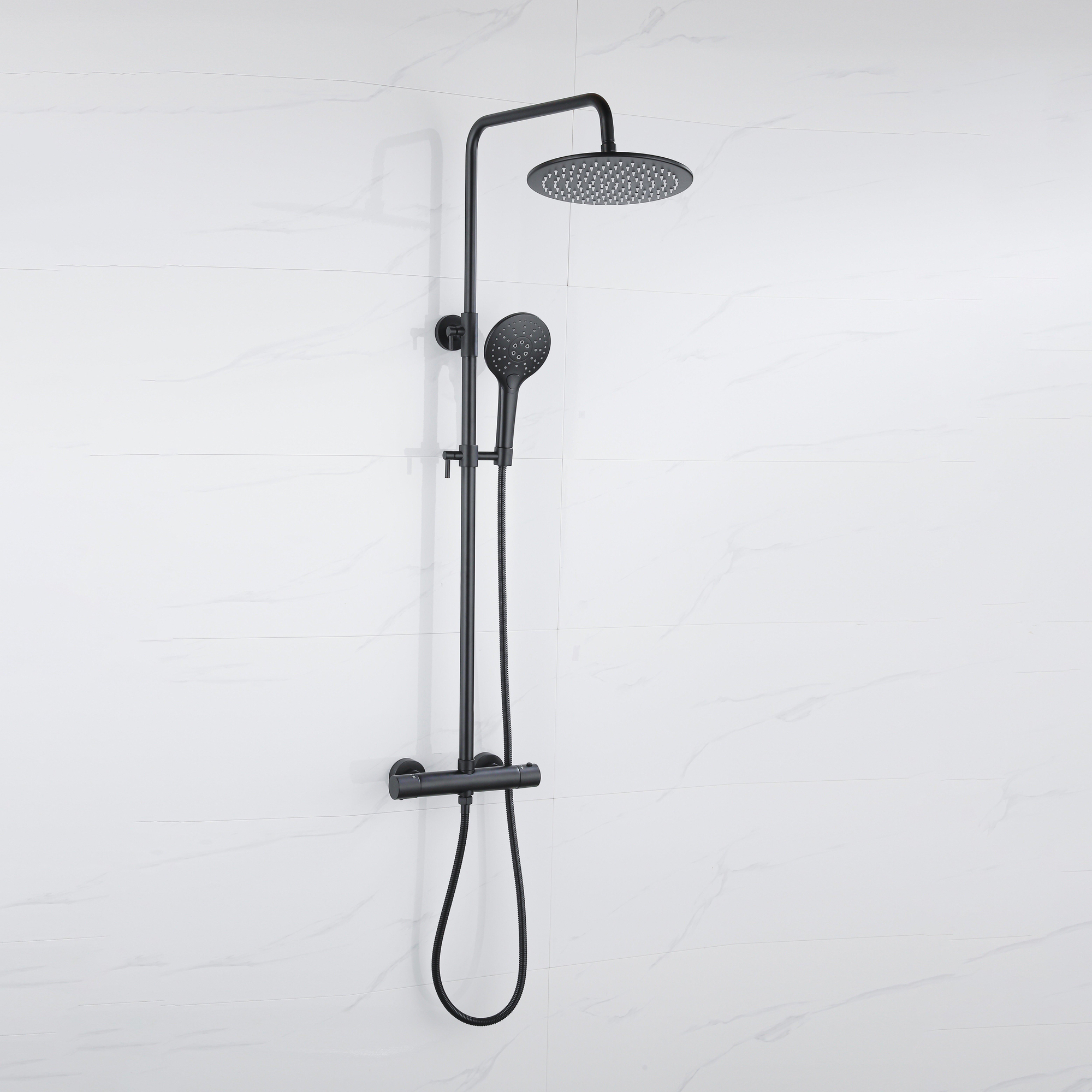De FugaFlow Eccelente Acces Regendoucheset in mat zwart combineert stijl en functionaliteit voor jouw badkamer. Met een royale 25 cm hoofddouche, een ronde handdouche en een duurzame metalen slang geniet je elke dag van een luxe en comfortabele douche-ervaring. Dankzij de thermostatische regeling blijft de watertemperatuur constant, wat zorgt voor extra veiligheid en comfort.