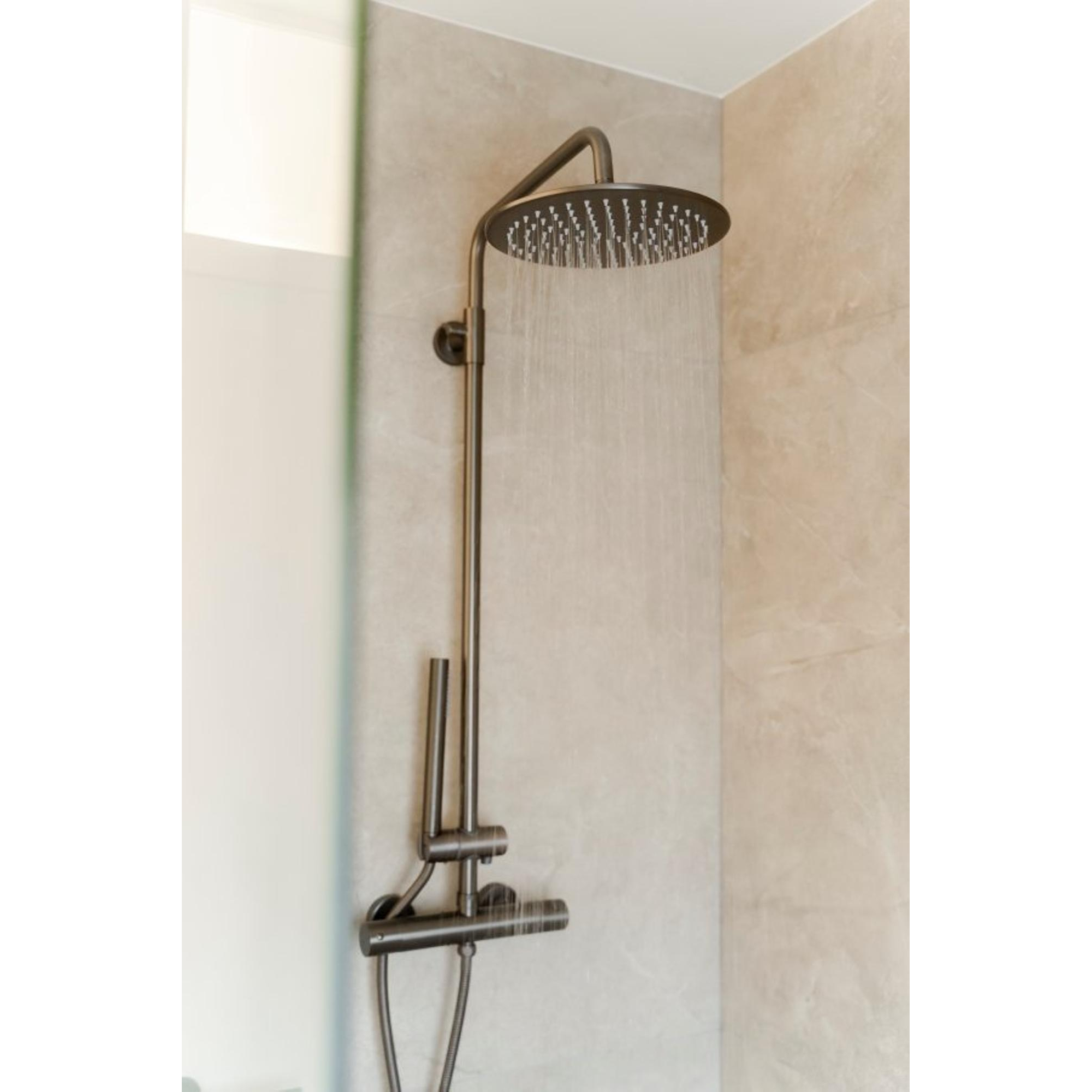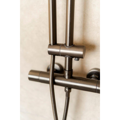 FugaFlow Eccelente Acces Regendoucheset - thermostatisch - 25cm hoofddouche - metalen slang - staaf handdouche - Geborsteld Gunmetal PVD