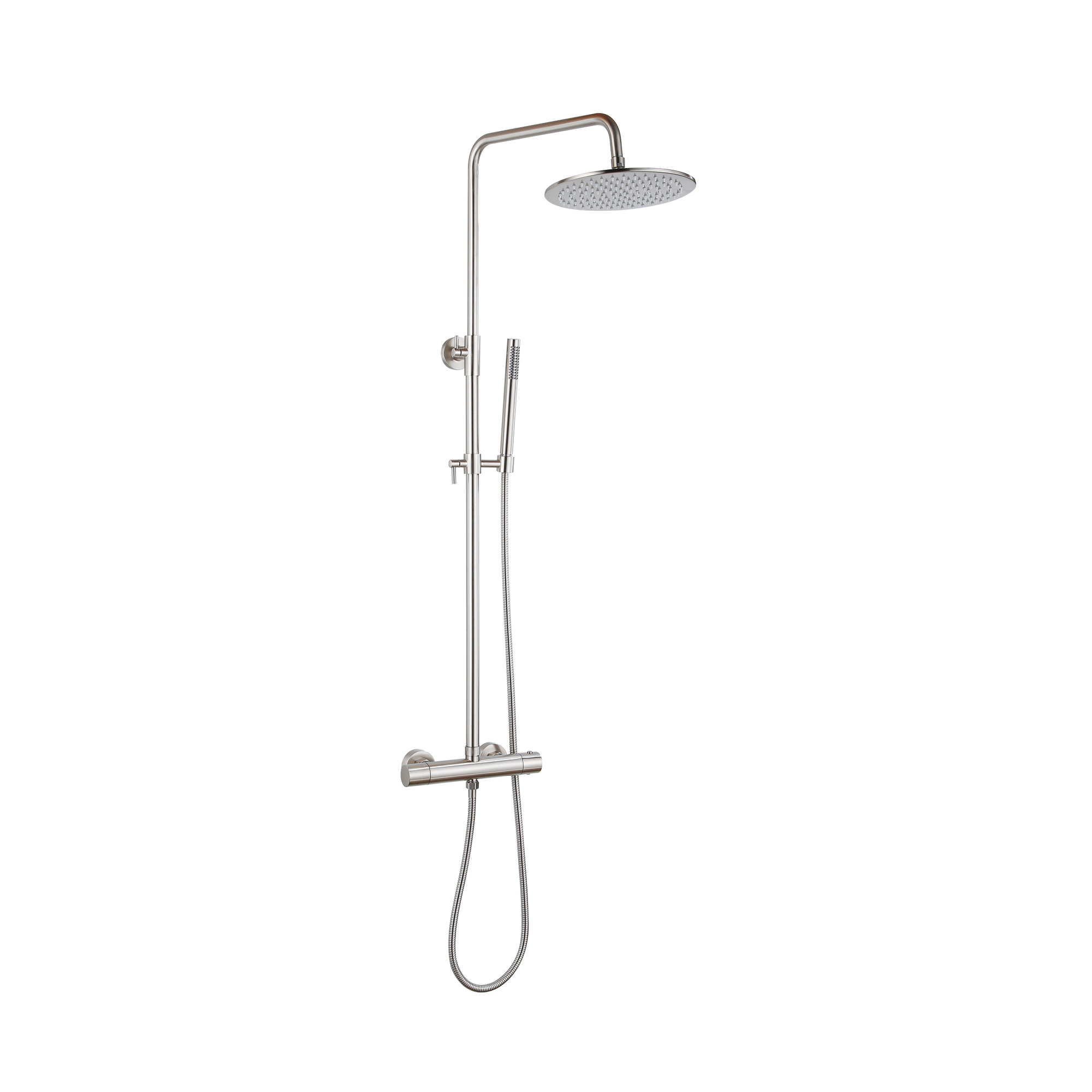 FugaFlow Eccelente Acces Regendoucheset - thermostatisch - 25cm hoofddouche - metalen slang - staaf handdouche - Geborsteld RVS PVD