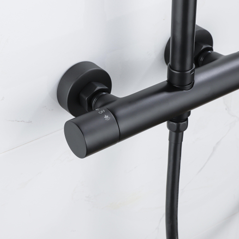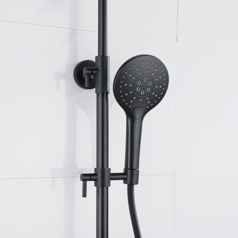 De FugaFlow Eccelente Acces Regendoucheset combineert stijl en functionaliteit met een moderne, matte zwarte afwerking. Deze set bevat een royale 30cm hoofddouche, een ronde handdouche en een gladde slang, waardoor je geniet van een ontspannende regendouche en een handige handdouche. Dankzij de thermostatische regeling stel je eenvoudig de perfecte watertemperatuur in voor een comfortabele en veilige douche-ervaring.