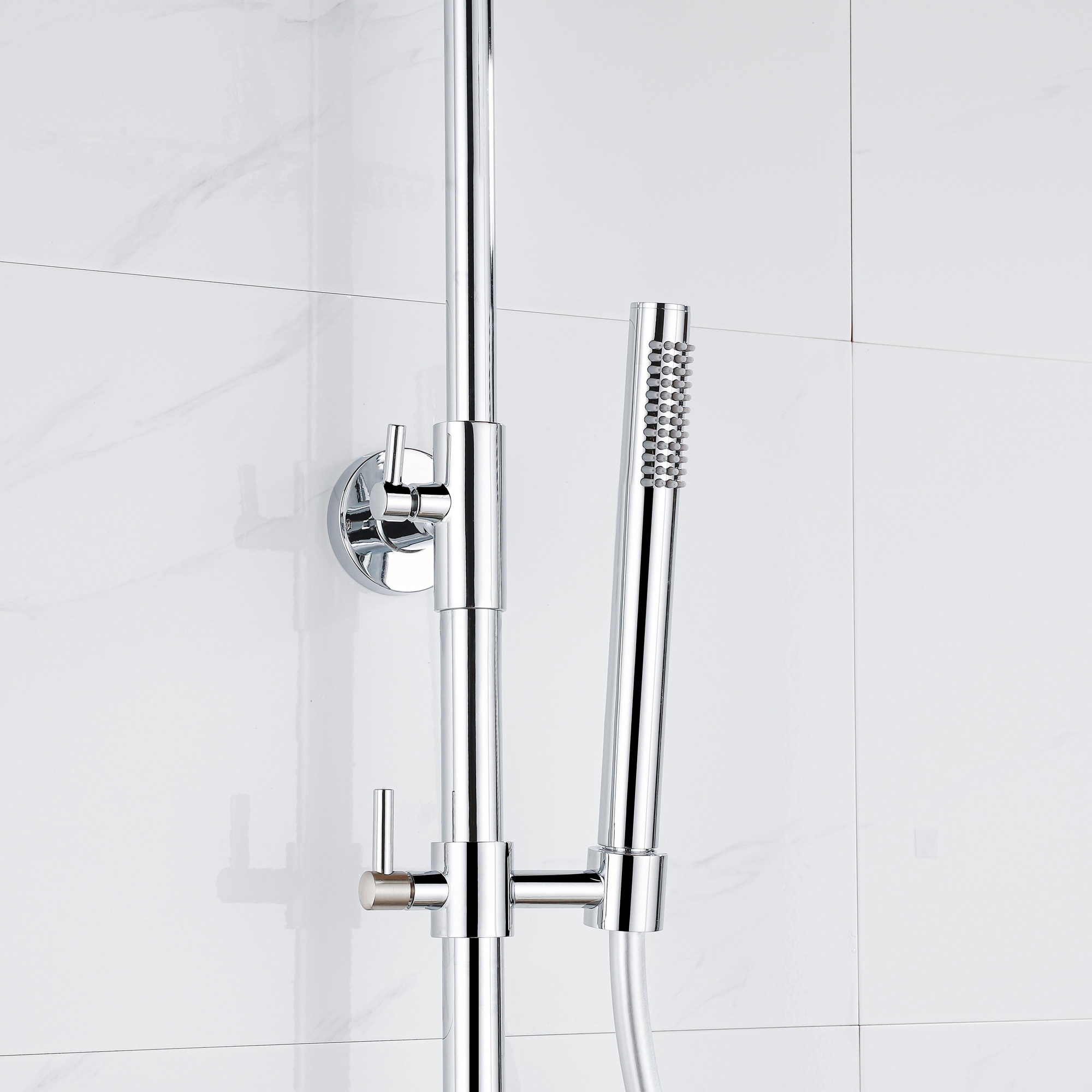 De FugaFlow Eccelente Acces Regendoucheset met thermostaat is een stijlvolle en moderne toevoeging aan je badkamer. Met een 30cm ronde hoofddouche, een gladde slang en een praktische staaf handdouche geniet je van een comfortabele regendouche-ervaring. Dankzij de thermostatische regeling stel je eenvoudig de perfecte watertemperatuur in voor optimaal doucheplezier.