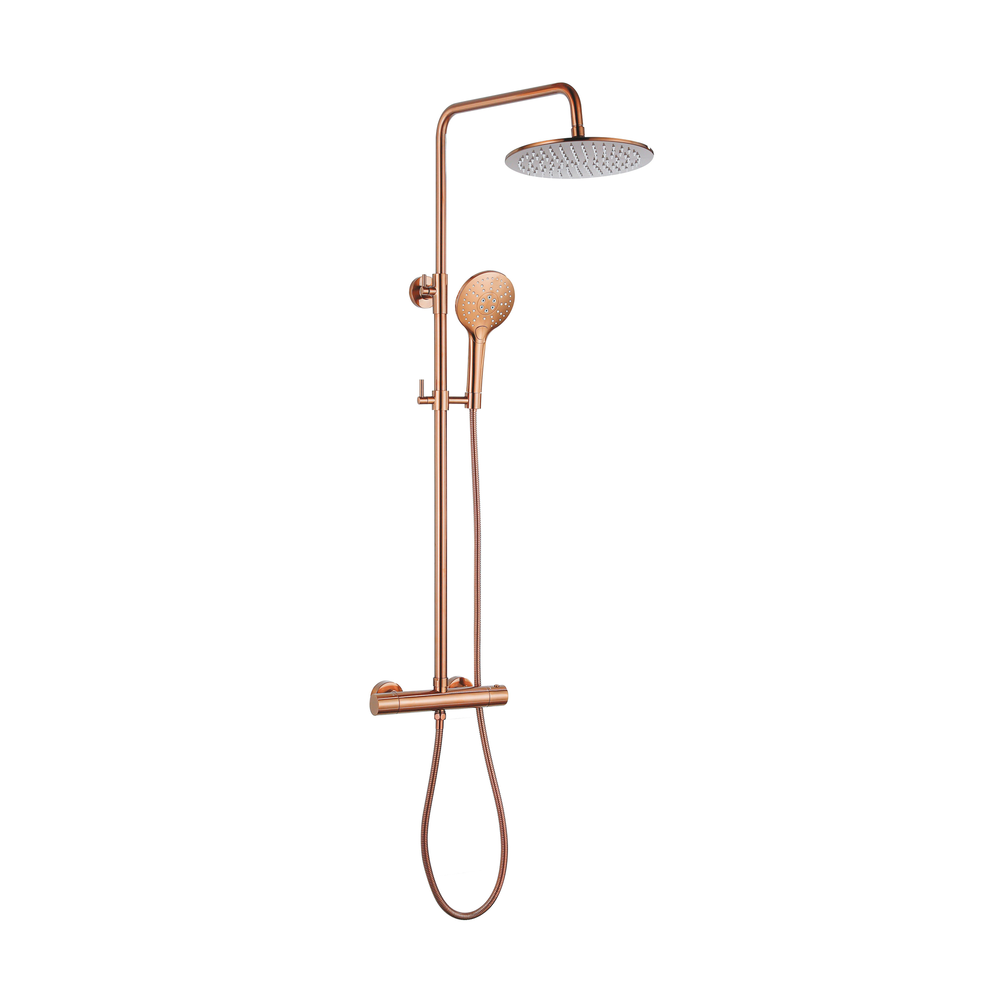 De FugaFlow Eccelente Acces Regendoucheset in geborsteld koper PVD brengt stijl en comfort samen in jouw badkamer. Met een royale 30cm thermostatische hoofddouche, een duurzame metalen slang en een ronde handdouche geniet je van een ontspannen en luxe douche-ervaring. Het moderne design maakt deze set een prachtige eyecatcher die jouw badkamer een upgrade geeft.