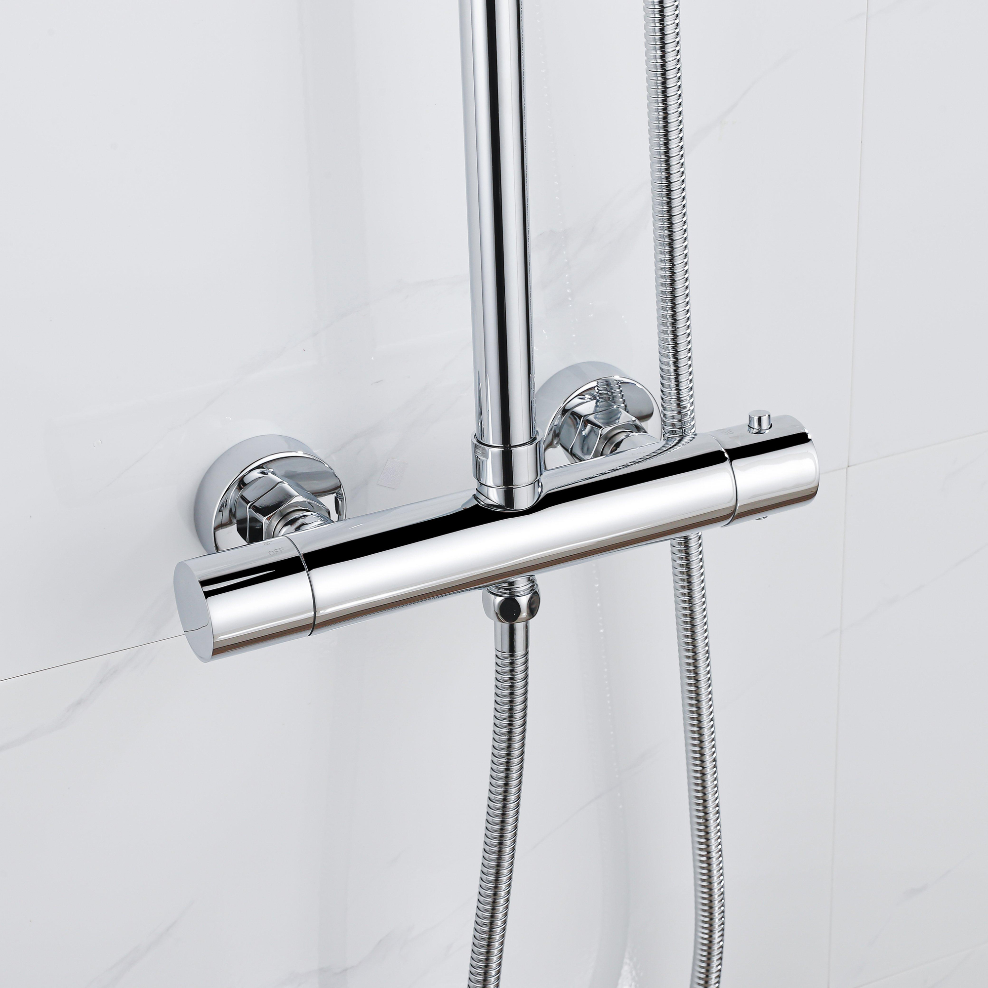 Let op, deze regendoucheset is voorzien van een thermostatische kraan die zorgt voor een constante watertemperatuur, wat extra comfort en veiligheid biedt tijdens het douchen.