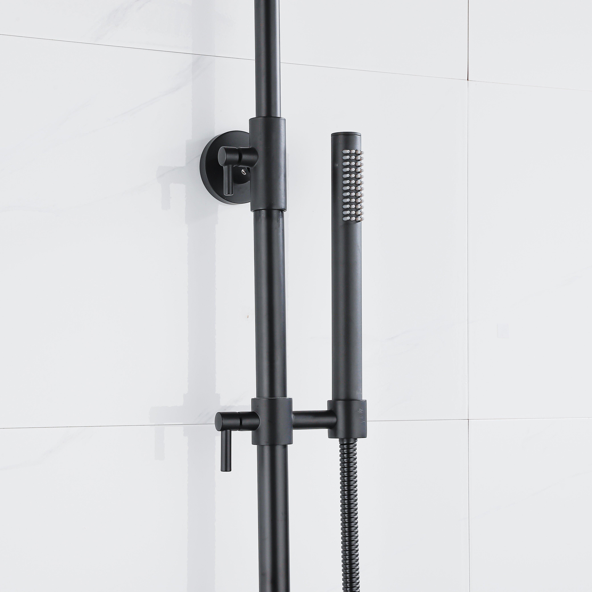 De FugaFlow Eccelente Acces Regendoucheset is een stijlvolle en moderne toevoeging aan jouw badkamer. Met een royale 30cm hoofddouche en een handige staaf handdouche geniet je van een ontspannen regendouche-ervaring. Dankzij de thermostatische regeling blijft de watertemperatuur constant, terwijl de duurzame metalen slang zorgt voor langdurig gebruiksplezier.
