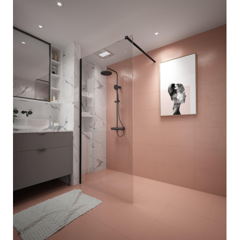 De strakke lijnen en het heldere glas geven deze douchewand een tijdloze elegantie die moeiteloos aansluit bij diverse badkamerstijlen. Het zwarte matte profiel voegt een subtiel contrast toe, waardoor het geheel een moderne en luxe uitstraling krijgt. Dit maakt het niet alleen een functioneel element, maar ook een echte eyecatcher in je badkamer. Door te kiezen voor deze stijlvolle inloopdouche geef je jouw badkamer een upgrade die je elke dag weer zal waarderen.