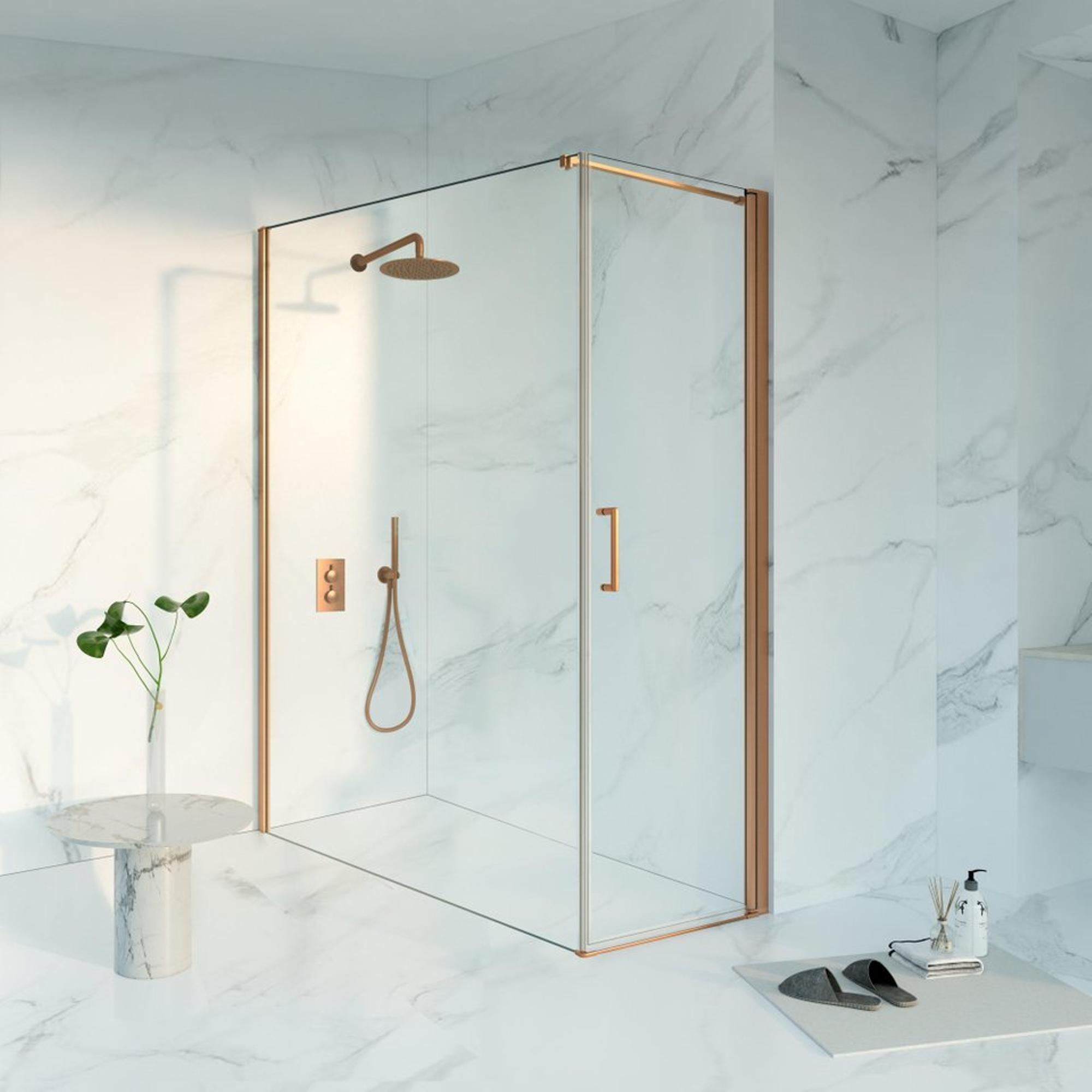 Let op, deze douchecabine is afgewerkt met een stijlvolle en duurzame geborsteld koper PVD coating, wat een luxe uitstraling geeft die perfect past bij diverse badkamerinterieurs.