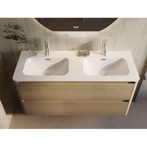 Thebalux Sunny Badmeubelset - 122x46x57cm - wastafel - keramiek - 2 kraangaten - glans wit - onderkast - 2 lades - greeploos - houtfineer - Blanc (hout)