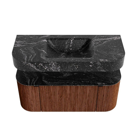 MONDIAZ THOR-DLUX 110cm badmeubel ronding links + rechts kleur Ruby met 1 lade en 2 deuren. Vrijhangende wastafel CLOUD Midden 1 kraangat kleur Lava.