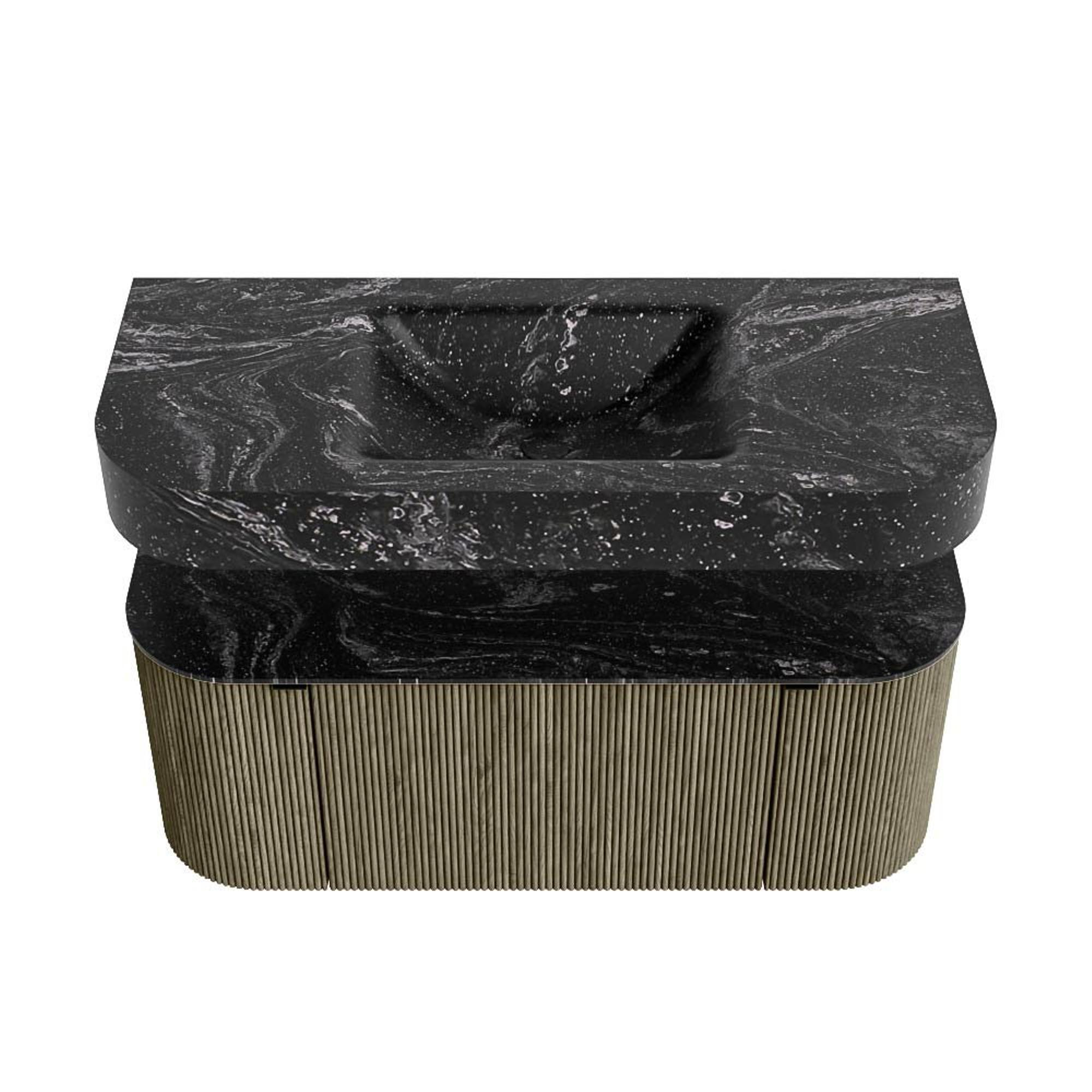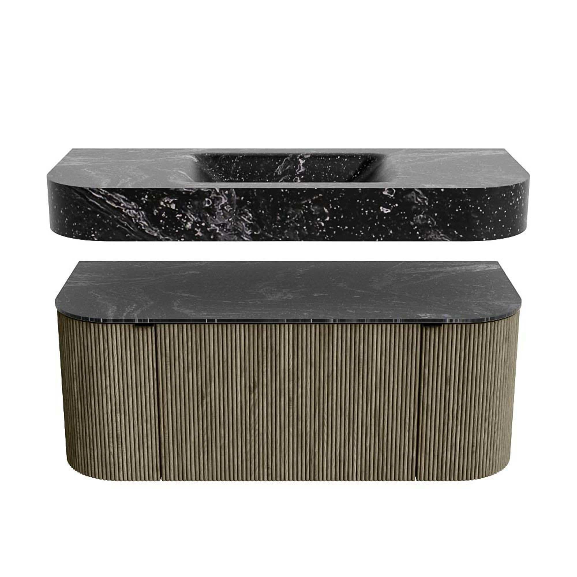 MONDIAZ THOR-DLUX 110cm badmeubel ronding links + rechts kleur Shadow met 1 lade en 2 deuren. Vrijhangende wastafel CLOUD Midden zonder kraangat kleur Lava.