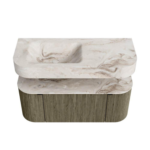 MONDIAZ THOR-DLUX 110cm badmeubel ronding links + rechts kleur Shadow met 1 lade en 2 deuren. Vrijhangende wastafel CLOUD Links 1 kraangat kleur Frappe.