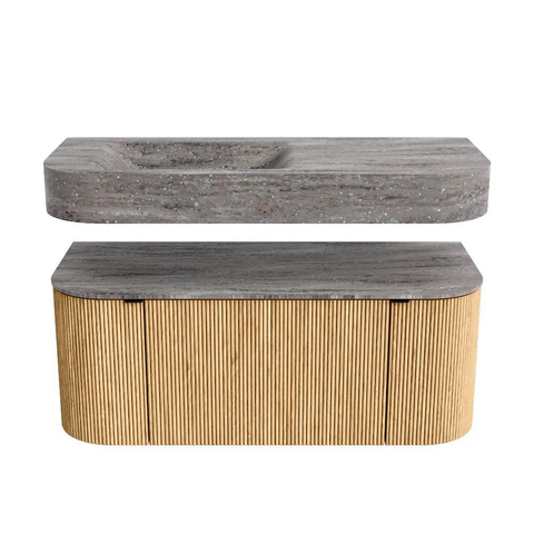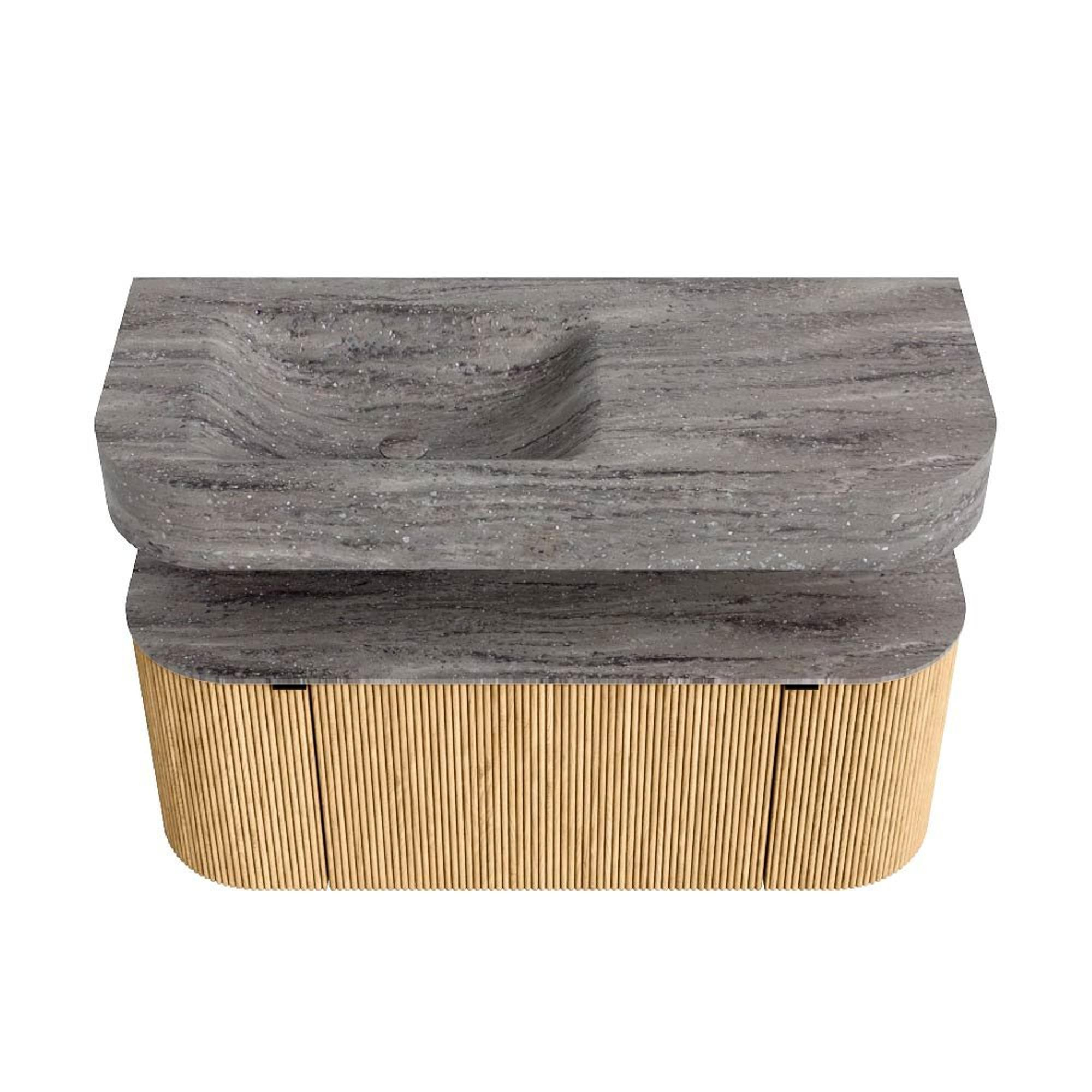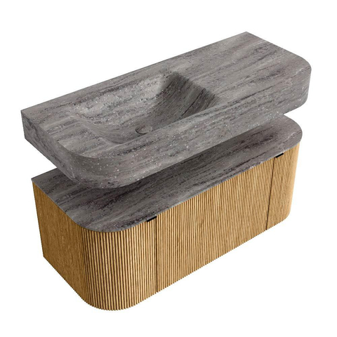 MONDIAZ THOR-DLUX 110cm badmeubel ronding links + rechts kleur Oak met 1 lade en 2 deuren. Vrijhangende wastafel CLOUD Links 1 kraangat kleur Oza.