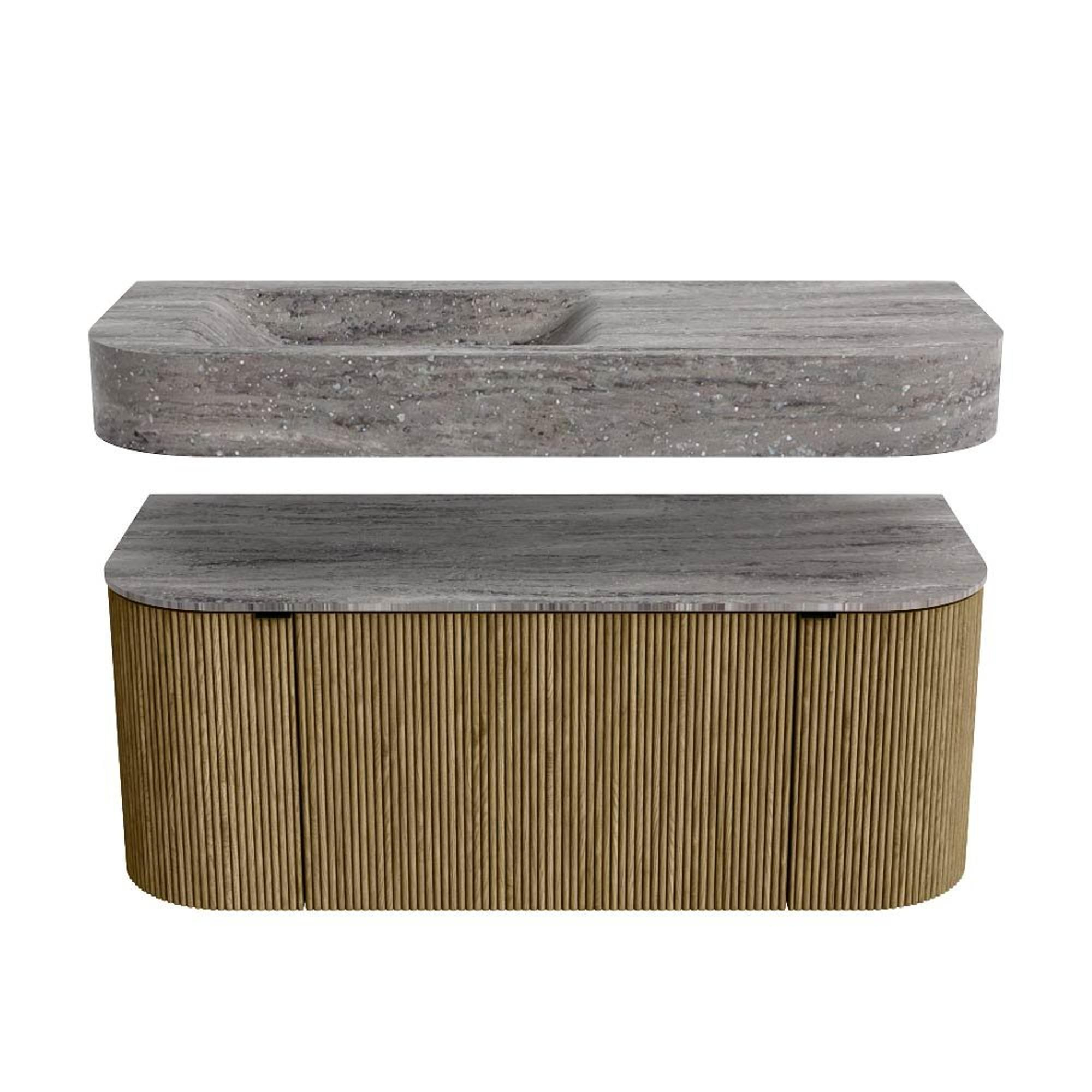 Natuurlijke materialen in warme tinten. De verticale ribbels brengen ritme en textuur in het ontwerp, terwijl het eikenhout zorgt voor een warme, ambachtelijke uitstraling. Kies uit 5 houttinten OAK, WALNUT, DUSK, SHADOW en RUBY zorgvuldig geselecteerde houtkleuren om zowel moderne als klassieke badkamers te verrijken.