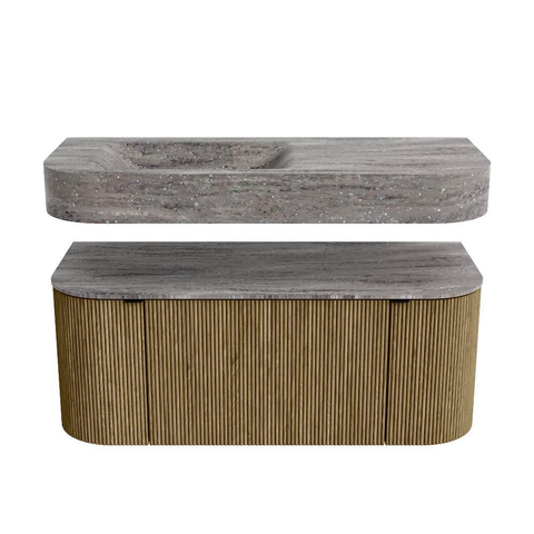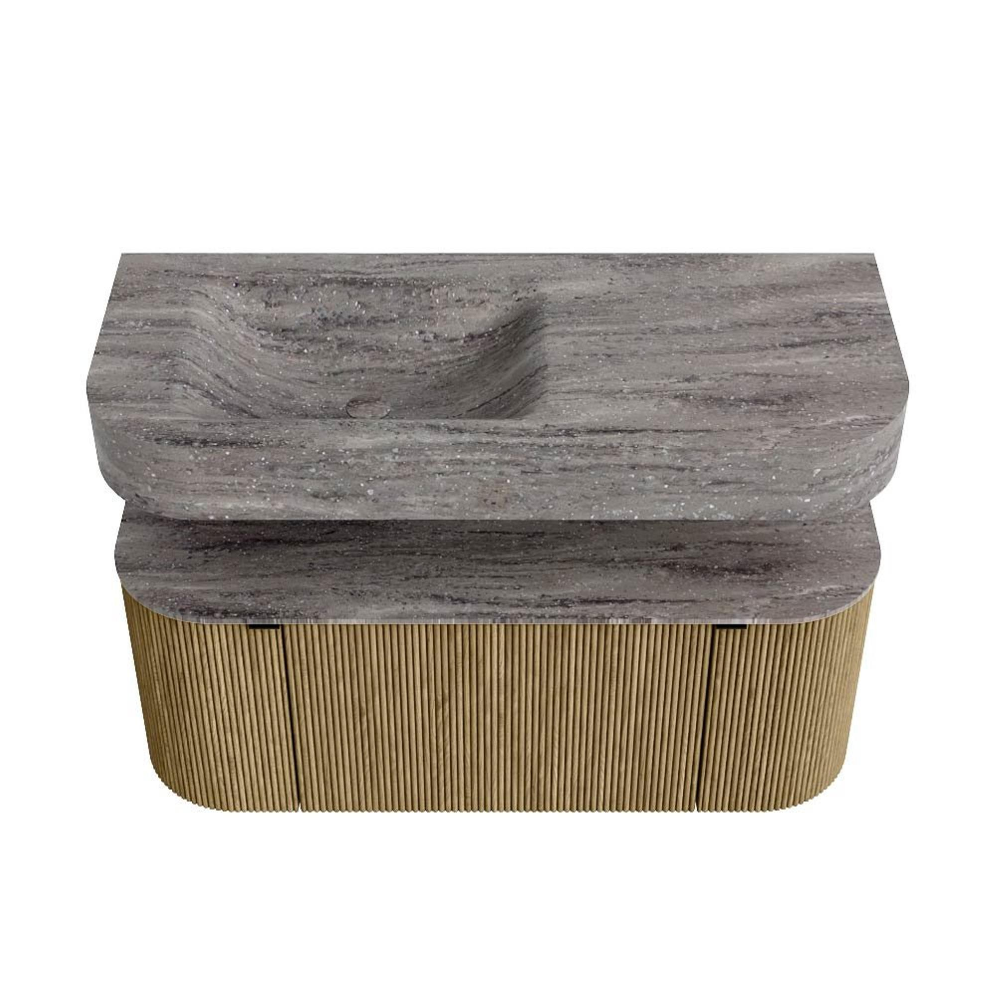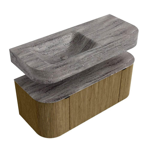 MONDIAZ THOR-DLUX 110cm badmeubel ronding links + rechts kleur Dusk met 1 lade en 2 deuren. Vrijhangende wastafel CLOUD Links 1 kraangat kleur Oza.