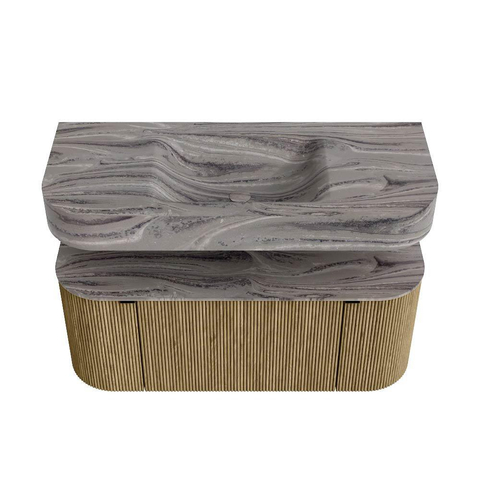 Ontdek THOR, een meubel dat architectuur en ambacht samenbrengt. Deze exclusieve serie THOR kenmerkt zich door haar verticale ribbelstructuur, uitgevoerd in massief eikenhout en eiken fineer. De vormgeving is strak en vloeiend tegelijk, met afgeronde contouren die elegantie en zachtheid uitstralen.